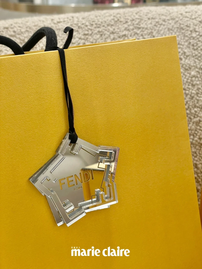 只要購入Fendi 2023—2024冬季假日系列的任何品項,紙袋上便會掛著Fendi星星鏡面掛飾,隨著商品一起附贈。
