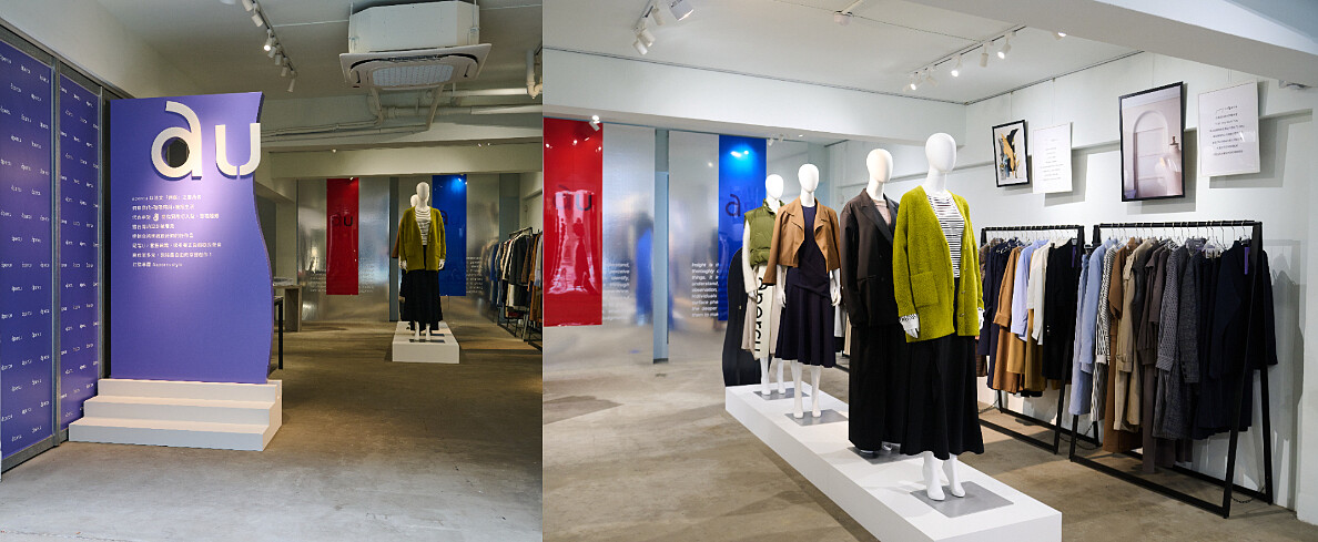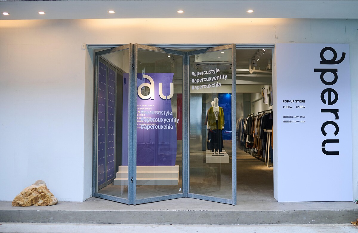 「apercu體驗店」除了自製的U系列作品,同時展示與服裝設計師董亭言共創「Yentity×apercu」、以及與陳佳睿共創「CHIA×apercu」的聯名作品,展示超過88款服飾和配件。