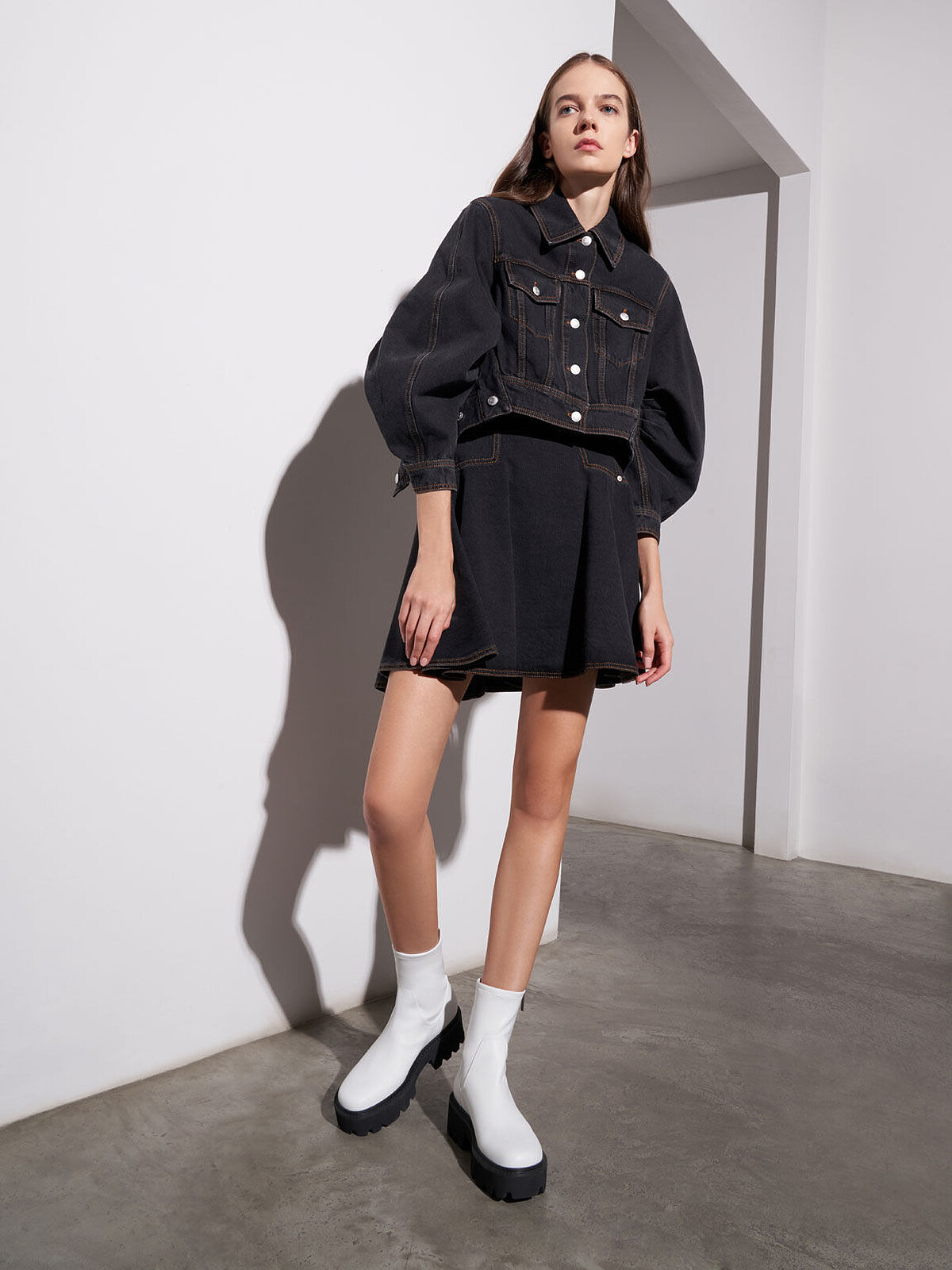 全身丹寧的造型適合搭配帶有中性感的短靴,一雙好搭配的白色短靴會是不錯的選擇,也能夠應付旅行多變的氣候。