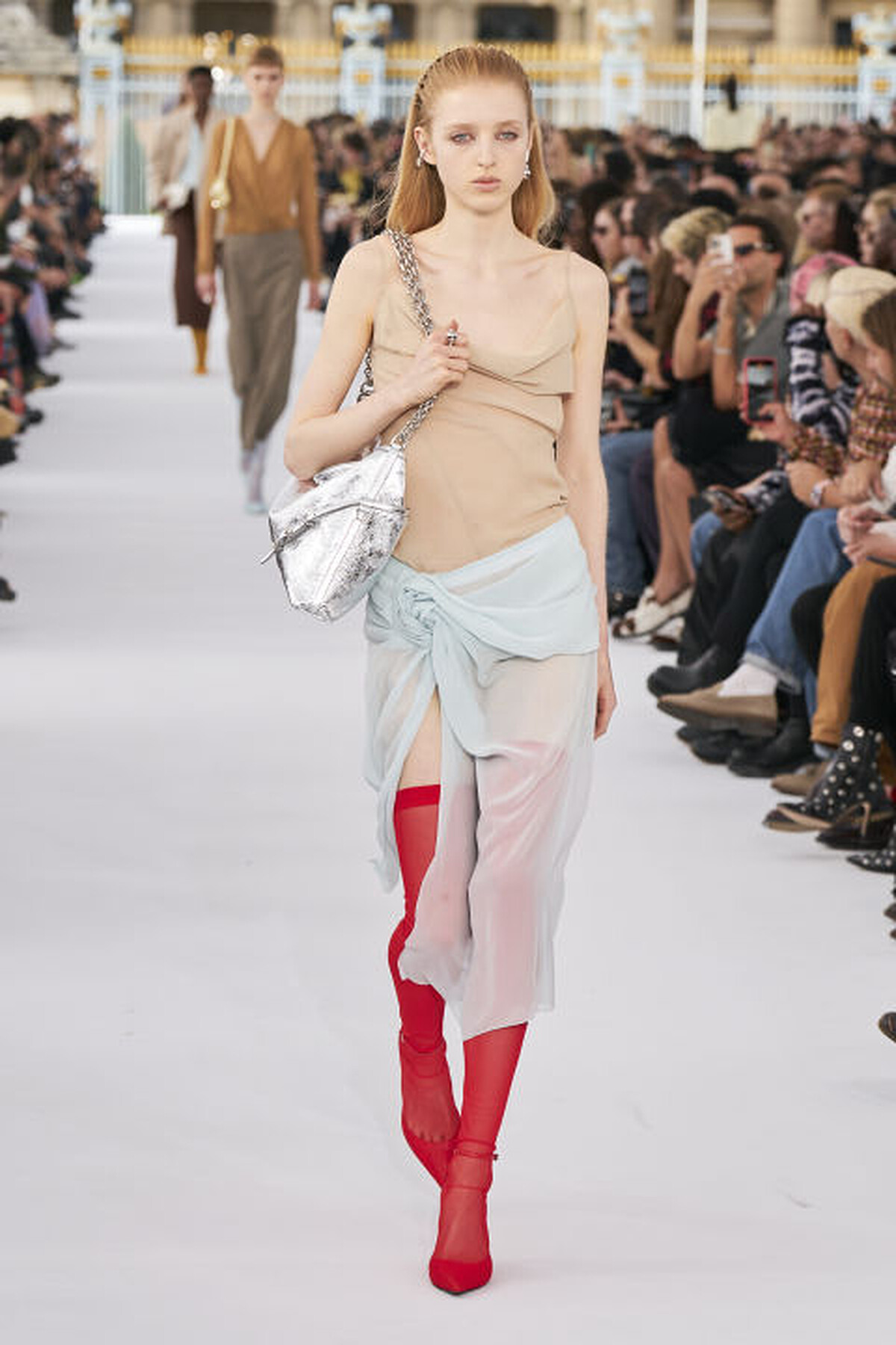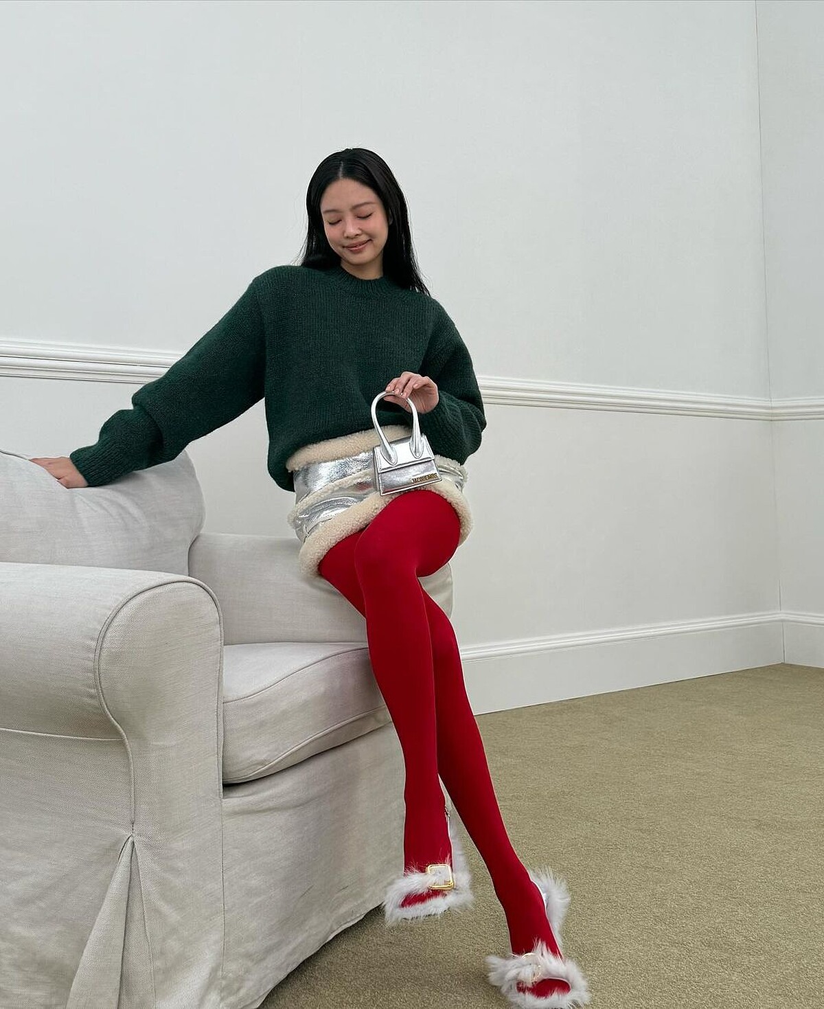 不只局限於秀場上或是舞台服,在日常裡穿上紅色褲襪其實沒有想像中這麼可怕,像Jennie日前替Jacquemus拍攝的佳節系列廣告裡,她就以紅色褲襪的造型出鏡,讓不少女孩們也燃起了模仿的念頭;女團LE SSERAFIM成員許允真最近也在私服造型裡運用紅色褲襪來搭配,歐美時尚博主們則是為各位示範了更多紅色褲襪的日常搭配參考。