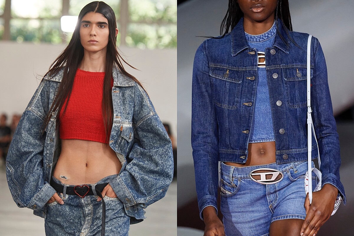 經典的牛仔外套因為版型合身、材質硬挺所以在強調肩膀線條與俐落感上會有很不錯的穿搭效果,而潮流感強的Oversized牛仔外套通常會是寬大的廓形剪裁,雖然藏肉效果好但有機會讓視覺感膨脹,內裡搭配建議選擇合身單品。