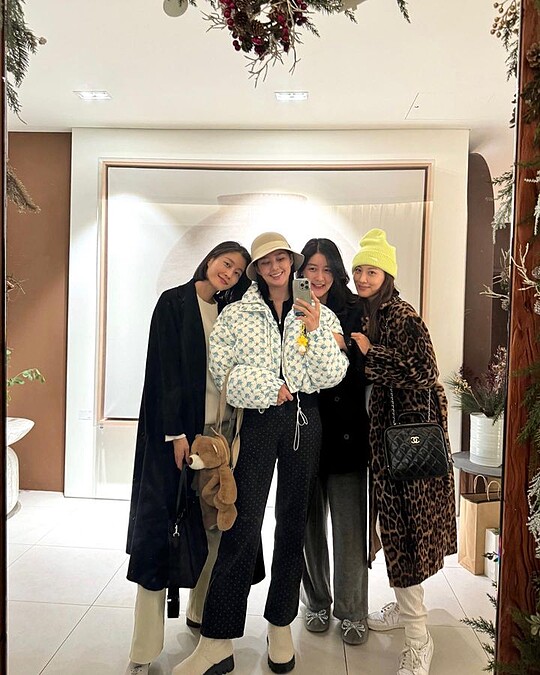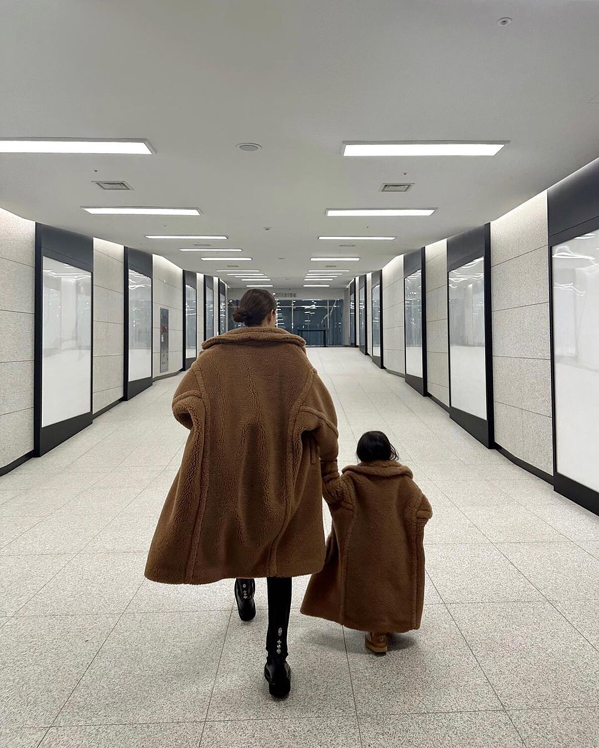 私下的金秀賢偶爾也會走華麗路線,像是與朋友們相聚時,她選擇了一套豹紋的長版大衣,來自皮草世家Yves Salomon;另外,她也與女兒一同穿上宛如熊寶寶的Max Mara大衣,療癒又時髦的設計,作為母女裝再可愛不過!