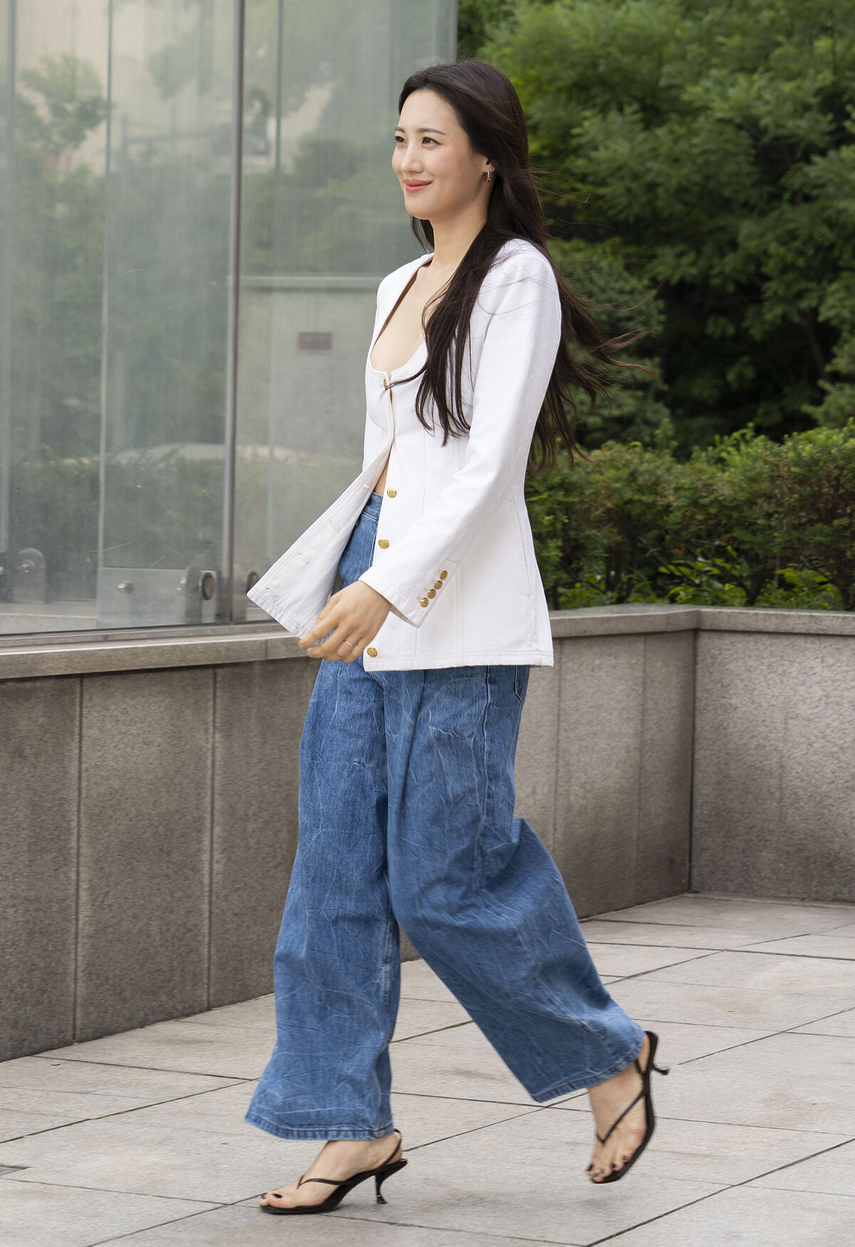 金秀賢受邀參加Valextra活動,她以深U領開襟衫搭配牛仔寬褲裝,腳踩低跟涼鞋,時髦而有型,看來毫不費力卻充滿女人味,非常性感。