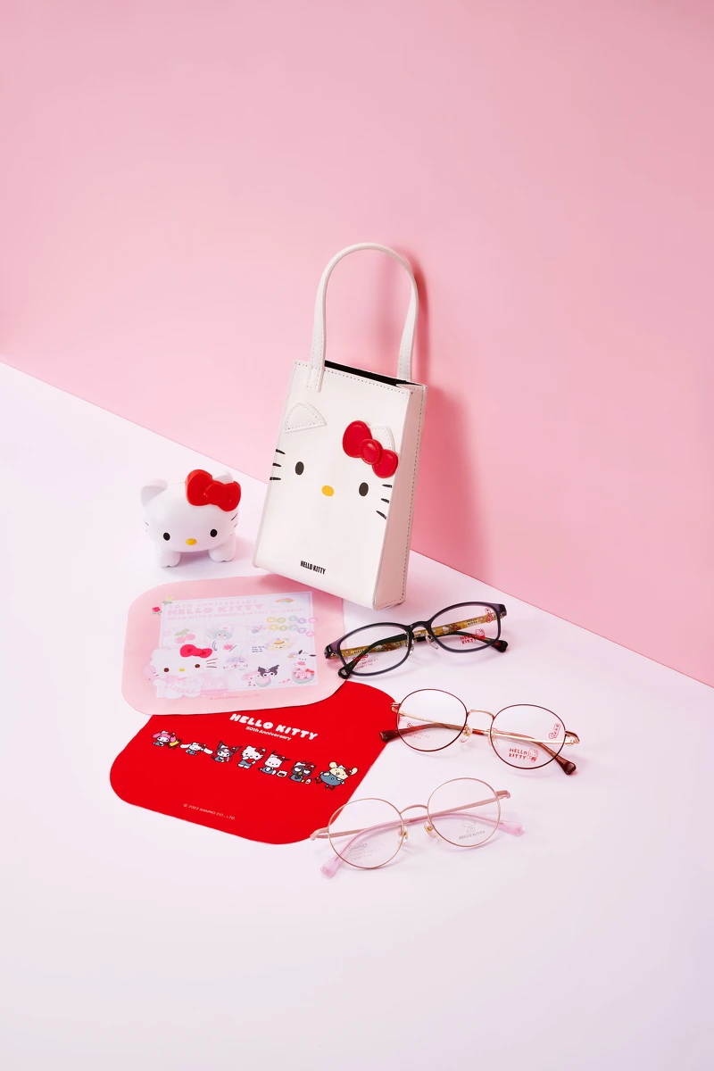 - 02. 到店消費HELLO KITTY系列鏡框即可獲得「限量訂製組」乙組,內容包含眼鏡袋、拭鏡布、限量紅包袋每款3入共2款,極限量,送完為止!