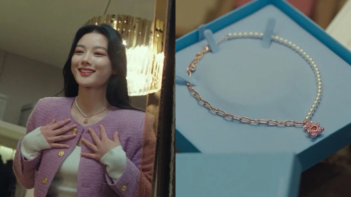 劇中鄭九元送給都到曦的禮物就是這條Swarovski Teddy 熊熊項鍊!雖然飾演的是堅毅不屈的女強人,但都到曦依然不乏少女心的一面,這款熊熊項鍊由珍珠與玫瑰金鏈半半組合,泰迪熊綴飾則是鋪滿粉紅色的水晶,中央還有一顆愛心飾石,也太可愛了吧!