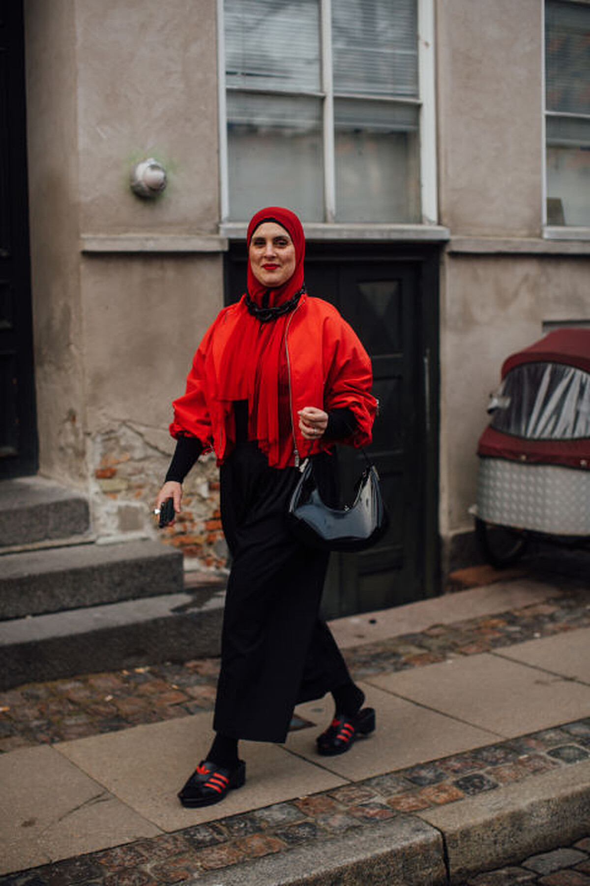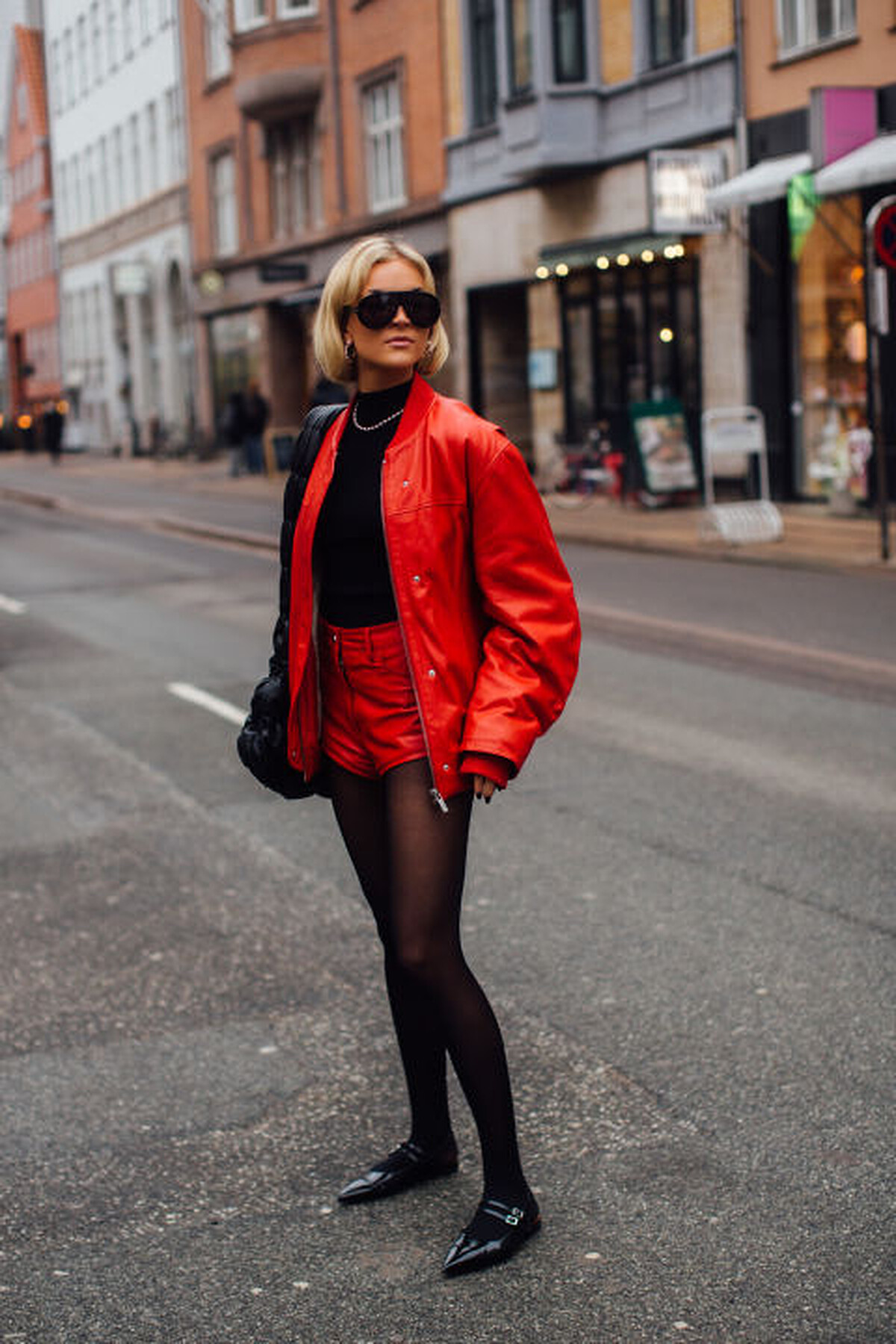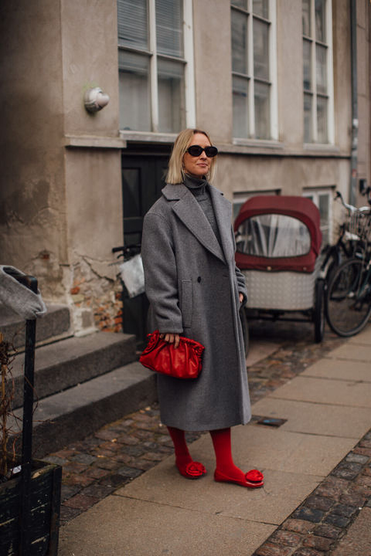 Oversize 的西裝外套已風行了好一陣子,走春時內層可以搭配紅色的針織上衣,為造型注入時髦亮點!