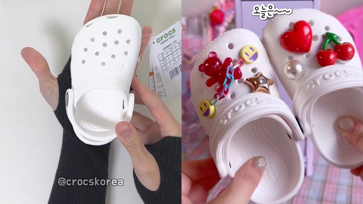近年拜Y2K風潮所賜,Crocs洞洞鞋從醜鞋稱號中谷底翻身,搖身一變成為全球名人搶穿的潮鞋代表,尤其在韓星們之間相當盛行。最近韓妞們更突發奇想,將Crocs的小童鞋當作吊飾使用,意外地掀起一股DIY個人化Crocs吊飾的熱潮。Crocs洞洞鞋雖然不一定能每天穿,但是可以每天掛身上!