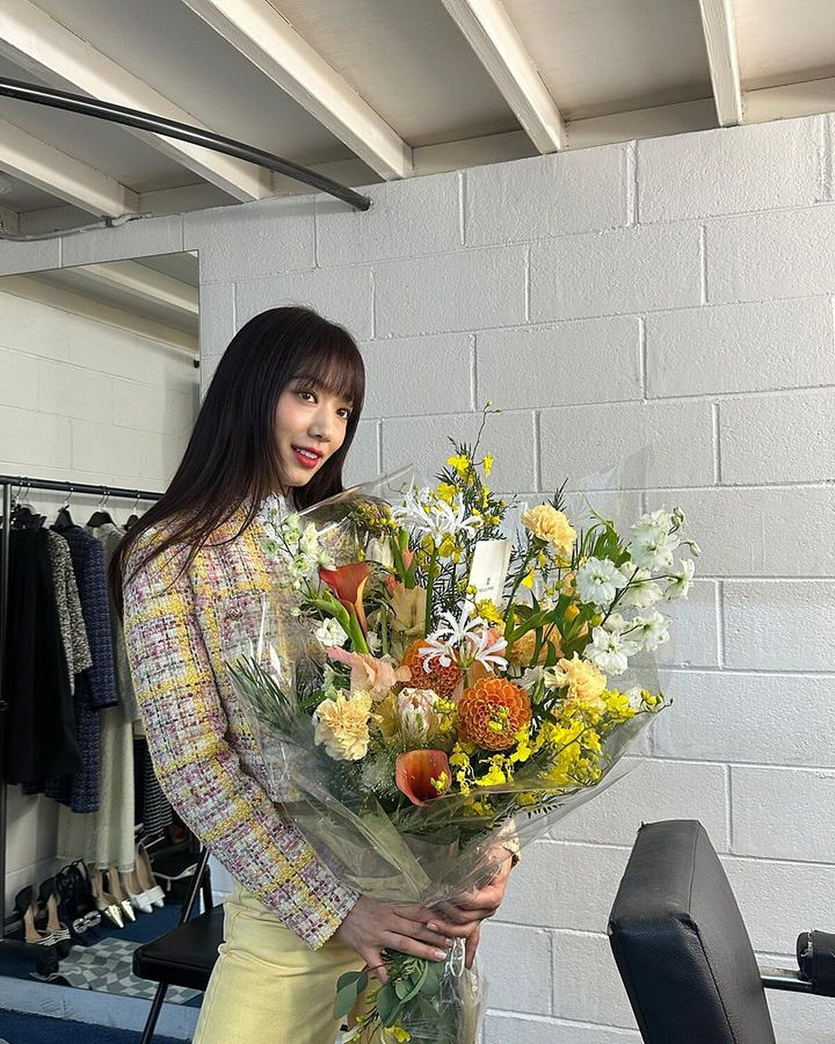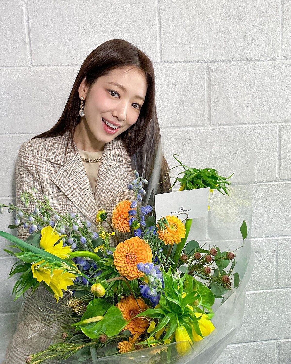 在稍微正式一點的造型裡,朴信惠會選擇更富設計感的外衣來搭配,像是毛呢質料、格紋的西裝夾克,或是條紋燈心絨面料的外套,都比一般平面布料、黑白灰的西裝來得有趣吸睛,此外,長絨毛材質的外套也是減齡必備,穿上後顯得軟萌軟萌的,特別可愛。