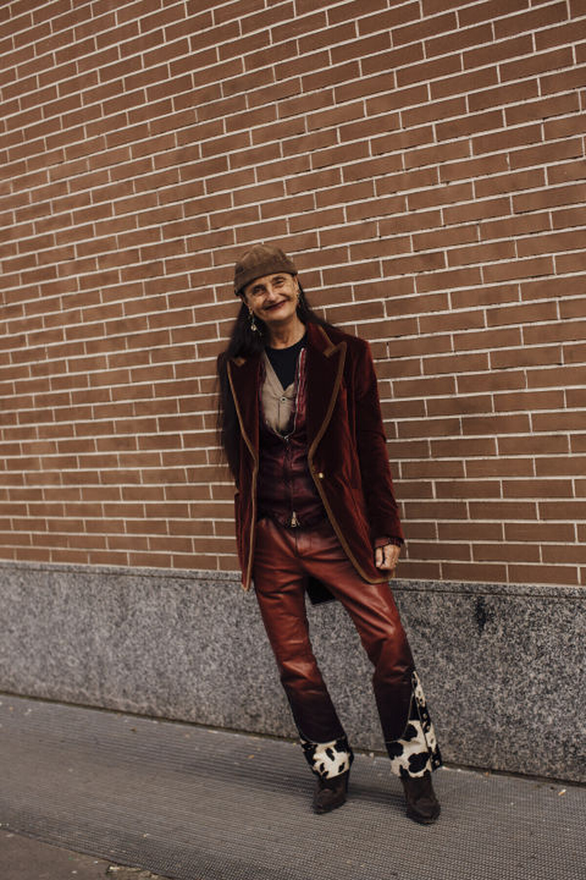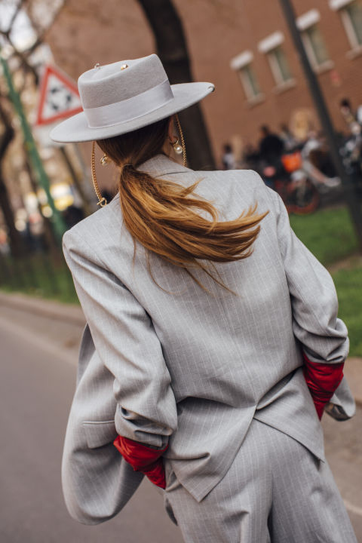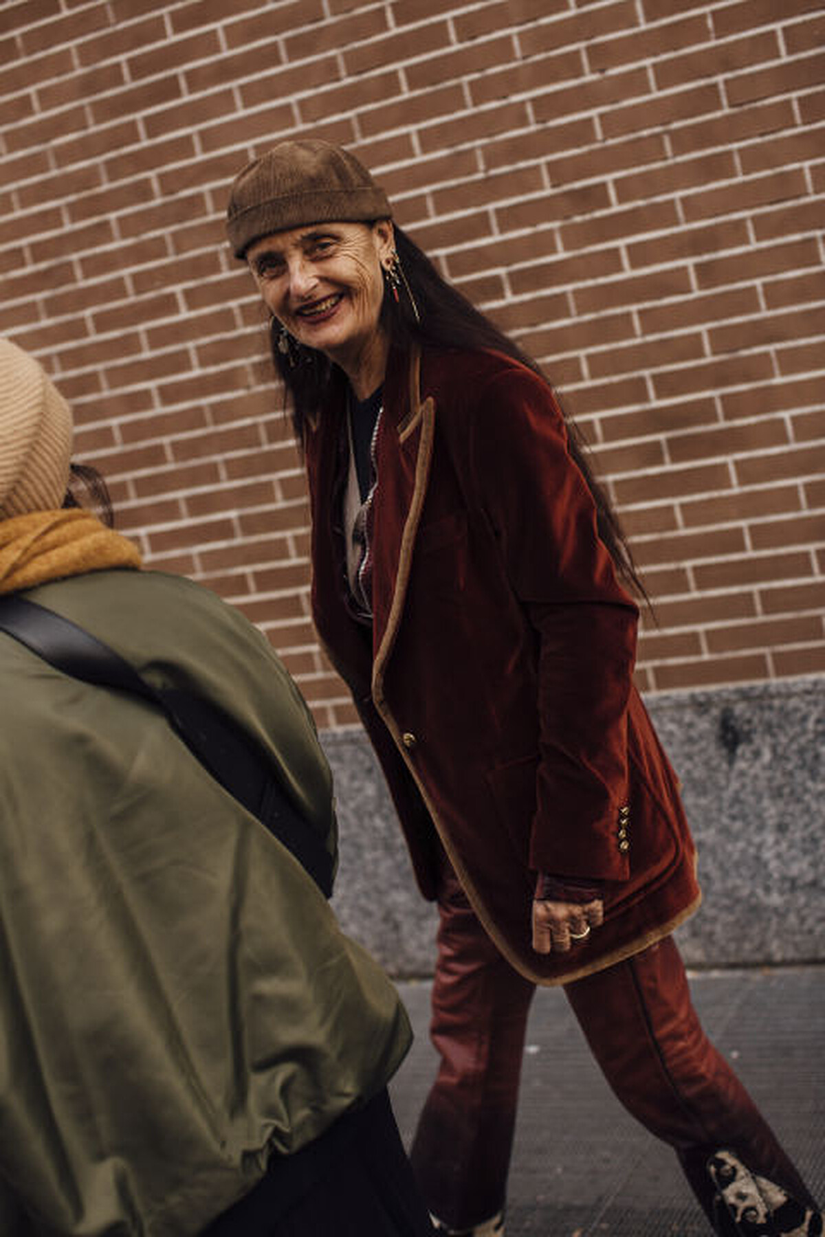 天鵝絨材質的西裝外套總帶給人一種低調奢華感,可以搭配近幾年街頭很火的水兵毛帽,兩者碰撞出令人耳目一新的火花!