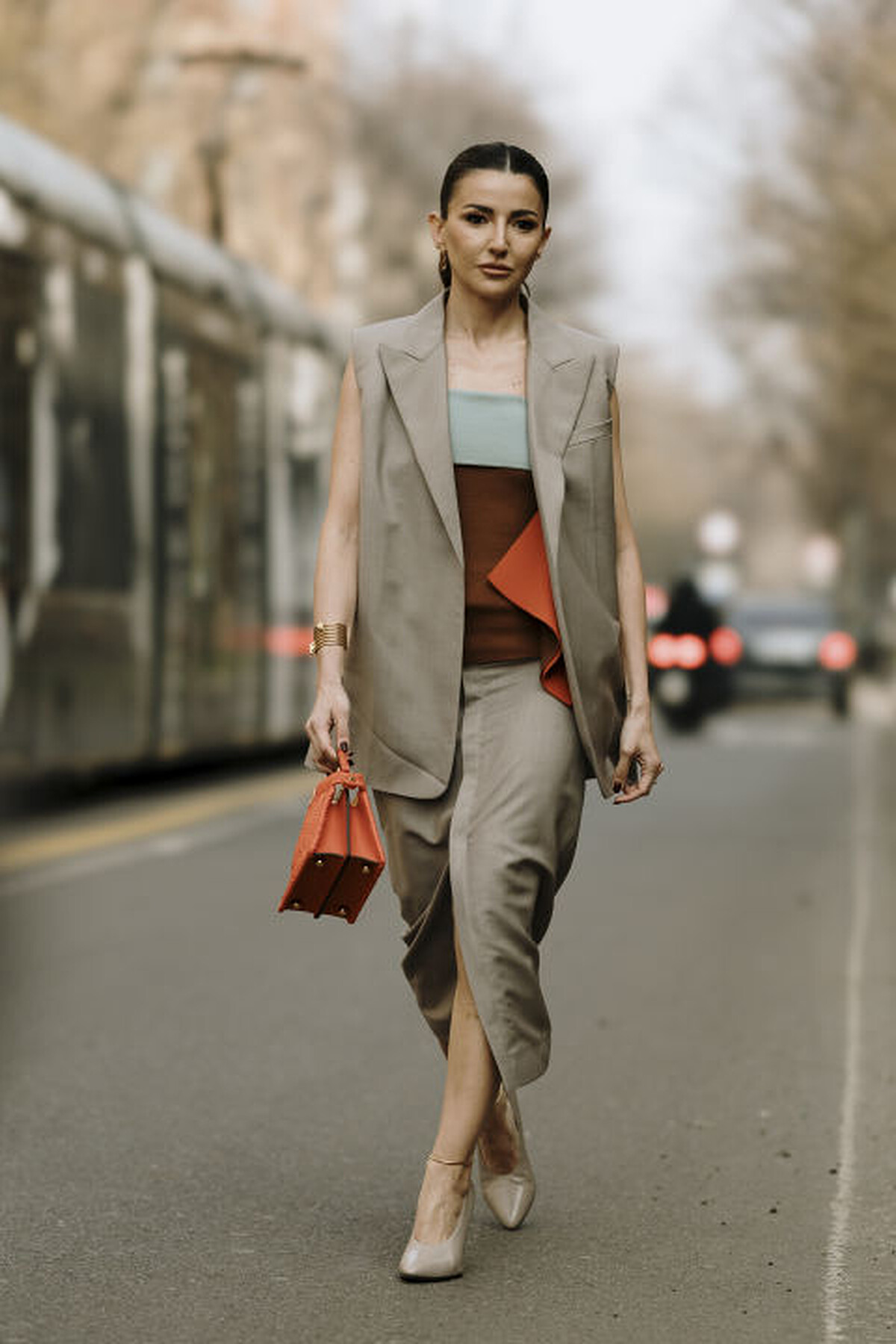 無袖西裝外套是日常時髦女人想穿著正裝的好幫手,避免太過於OL感,可以內搭設計感強的上衣,或是腳踩一雙時髦球鞋也是不錯的選擇!