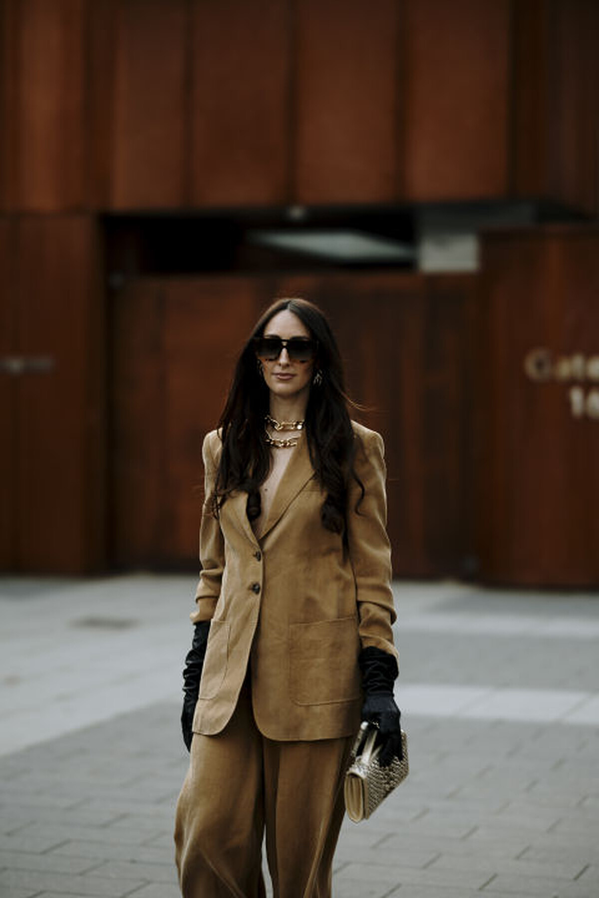 駝色系的單品在本季依然是重點,可以混搭手套、項鍊及手拿包等元素,讓造型更具層次,需留意單品間的配置,不用貪多。