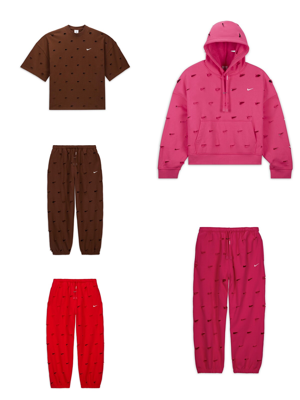 簡單的配色與實穿性強的上衣、縮口褲及帽Tee 結合有著雷射 Swoosh 圖樣的設計單品,無論是春夏單穿,或是秋冬搭配外套都很實用。