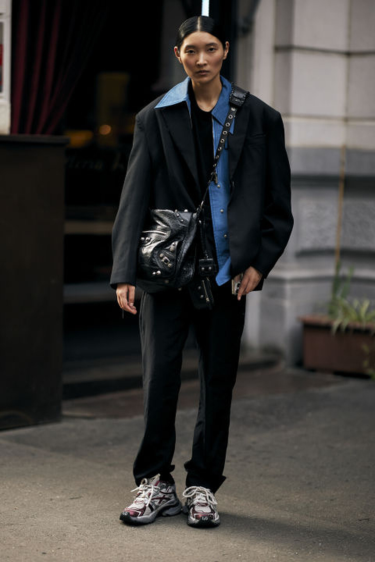 西裝這項單品在今日也不分男女,本季你可選擇寬鬆設計或較大尺寸的西裝外套,穿出落肩感,但切記材質要選硬挺的款式,下身則能搭配合身褲款呈現上寬下窄輪廓,搭配老爹鞋展現自我風格。