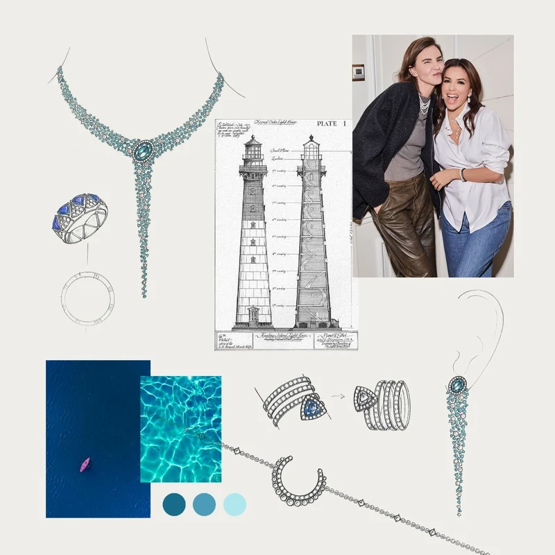 設計團隊必須堅持將工藝與「精緻、時尚、微笑」完美結合的理念。根據不同主題,設計師親手繪出圖紙, 全手工製作的珠寶躍然紙上。靈感牆不僅啟發了我們的珠寶設計師,更孕育了與珠寶同步推出的配飾作品。當然,這也是我們廣告大片、精品店陳列以及我們線上、線下活動背後的想像力起源。