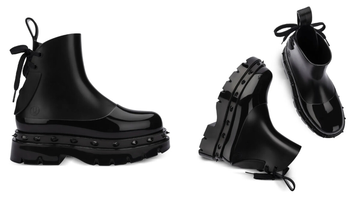 來自巴西的環保鞋履品牌 Melissa,這次攜手日本街頭鬼才高橋盾主理的 UNDERCOVER,推出一雙兼具造型與功能的話題聯名——Melissa x Undercover Spikes 厚底及踝雨鞋。這雙中性設計的雨靴,以大膽銳利的「尖刺」為視覺焦點,結合Melissa拿手的可回收Melflex®熱塑性材質,打造出叛逆卻不失輕盈穿感的雨日宣言。