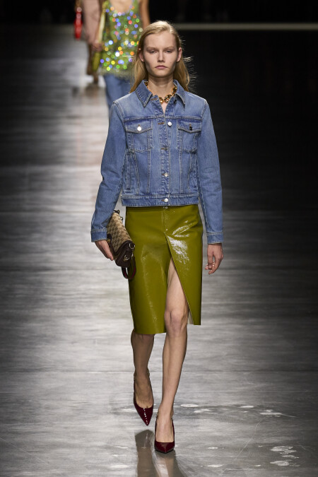 Alexander McQueen 在SS24帶來了俐落時髦的丹寧風格,標誌性的西裝外套輪廓搭配火了幾季的過膝長靴,保留了品牌的叛逆個性,展現現代中性風範!