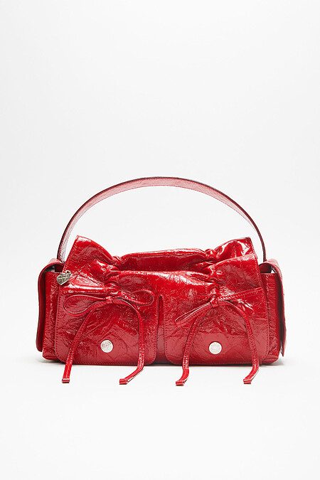 Acne Studios新推出的蝴蝶結包以矩形輪廓為基底,加入抽繩、蝴蝶結等少女元素,是今年編輯認為非常值得入手的一款特色手袋,最新形象照裡,女團ILLIT成員也拎上演繹。