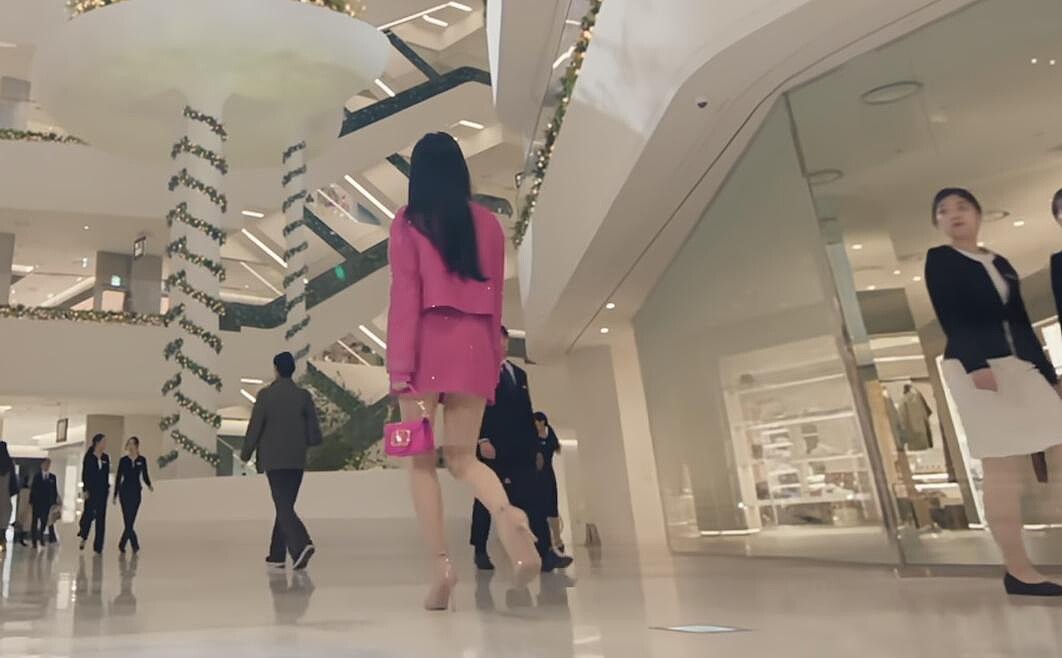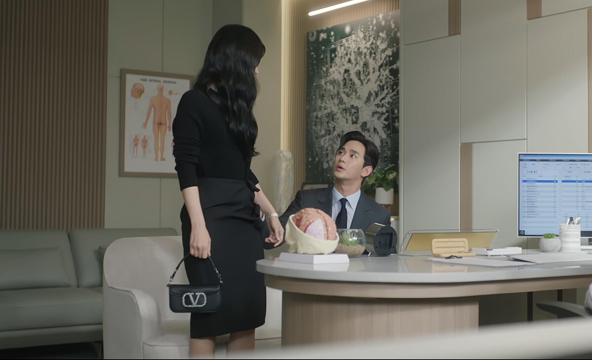 金智媛在劇中很愛穿成套正裝突顯千金洪海仁的財閥形象,一身 Pink PP 套裝搭配 Valentino Garavani Locò 手袋,展現 One Tone 風格 。