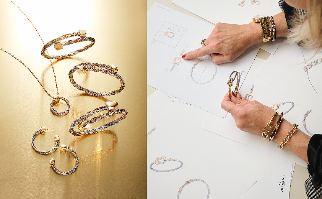 St-Tropez Mariner 系列,這個系列的核心是鏈子的圖案,和St-Tropez腕表的手鍊設計相同,也豐富了Charriol最暢銷的St-Tropez™手錶的宇宙。 透過金屬、圖案和吊飾的混合重新詮釋,在手鐲、耳環、戒指、長項鍊和短項鍊上一一所有這些元素都可以被發現。