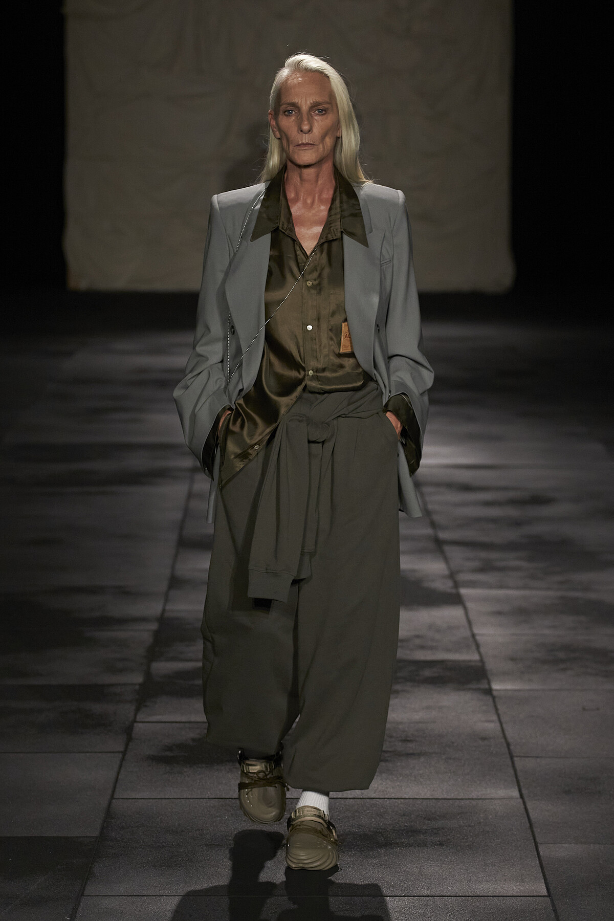 ACT N°1 本季將開領襯衫搭配寬鬆西裝與長褲,結合深灰色系,跳脫年齡與性別,優雅卻充滿力量。