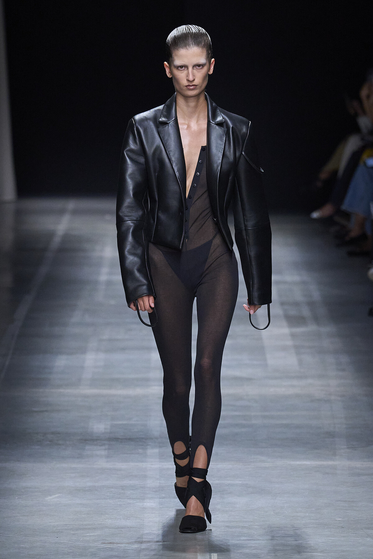 Andreadamo 將帥氣的皮衣造型結合透膚材質的內搭,個性中透露性感氛圍,具有前衛先鋒氣質。