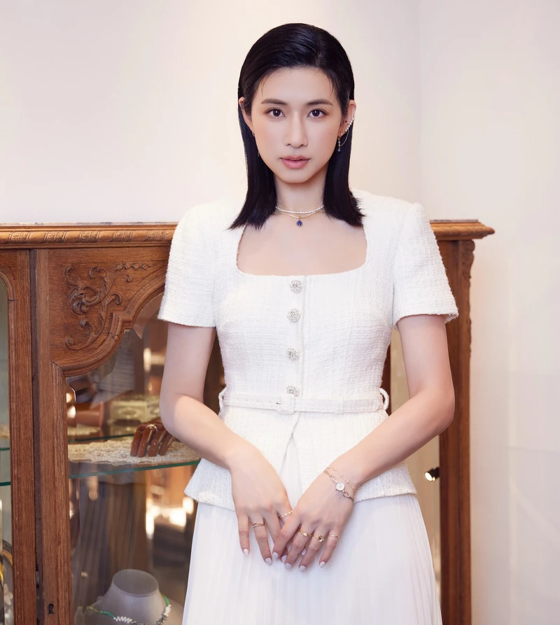 趙岱新這次除了戴上自己鍾愛的agete珍珠系列作品外,考究的她同樣也選擇了混搭層次配戴方式來讓整體穿搭更具立體豐富度,她表示:「這些柔美細膩的風格珠寶,就算日常單獨配戴不與珍珠組合,也一樣能為造型畫龍點睛。」