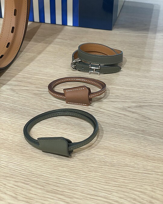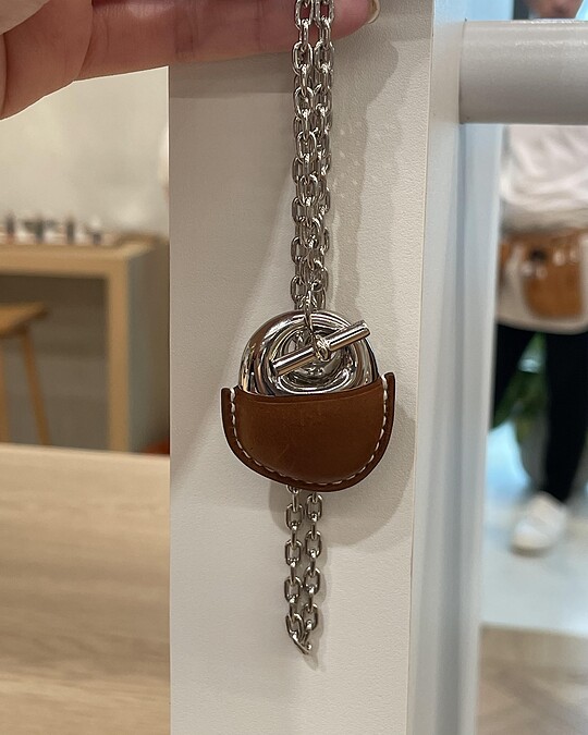海灘或是河床邊被磨得圓滑的鵝卵石,成為本季愛馬仕的創作靈感,小牛皮包覆圓潤金屬,變成一項可愛的小飾品。