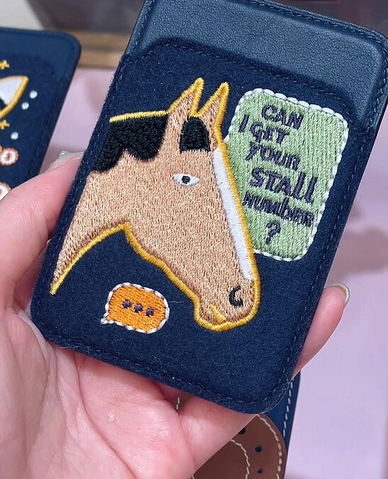 愛馬仕推出一系列由小牛皮佐上羊毛刺繡的MagSafe卡夾,以俏皮的方式融合馬術元素,化為手機配件陪伴大家的日常!另外也有充電座、耳機保護殼等3C用品的週邊。