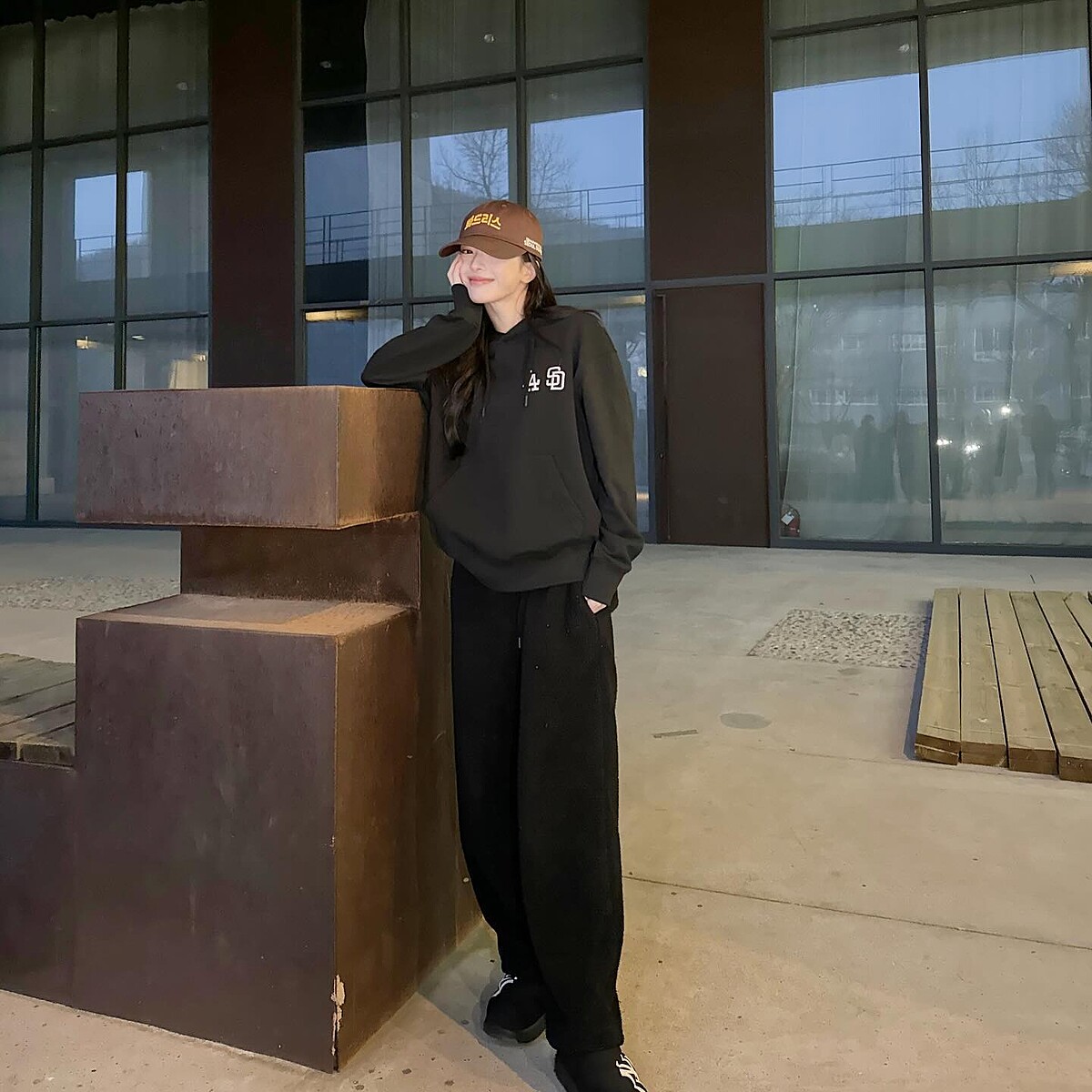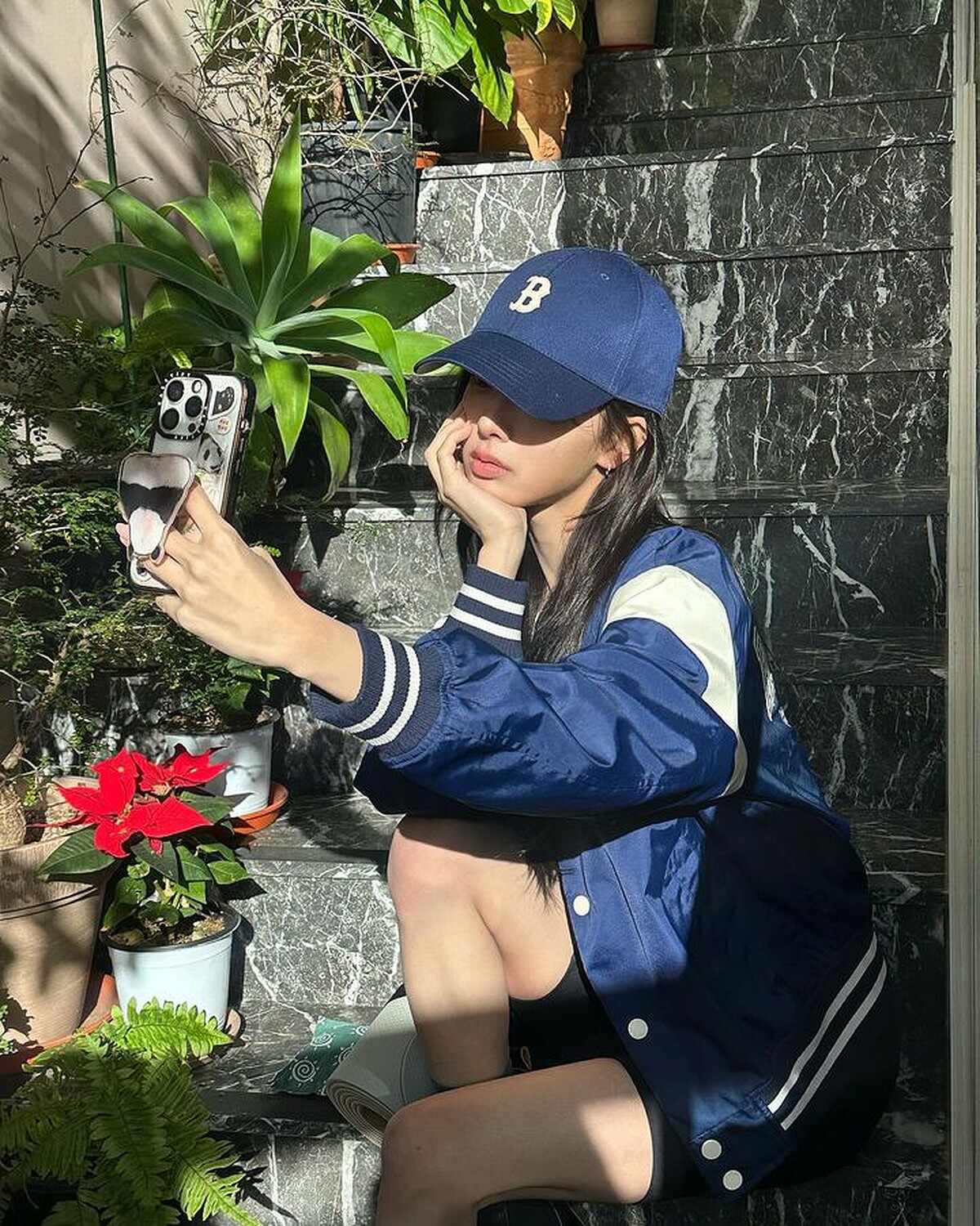 從盧正義的IG私服可以看出她並不追求凸顯窈窕身形的衣裝,反倒是經常穿得中性低調,寬鬆帽T搭配長褲、白色背心與運動裙的組合、硬挺撞色的棒球外套……尤其是一頂棒球帽便能成為她的耍帥神器。