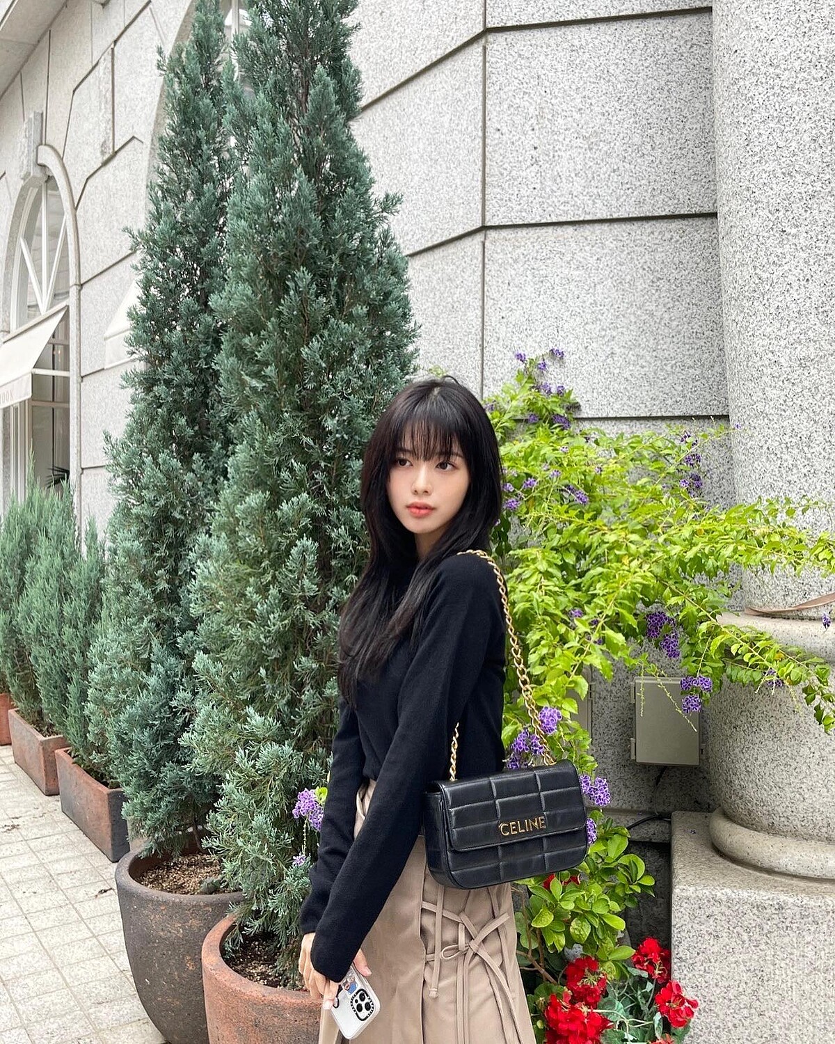 延續盧正義在《名校的階梯》中高冷精緻的女王風格,私下的她也很懂得運用「風衣」單品來營造氣場,或是以大面積的格紋和印花,襯托成熟幹練的氣質。