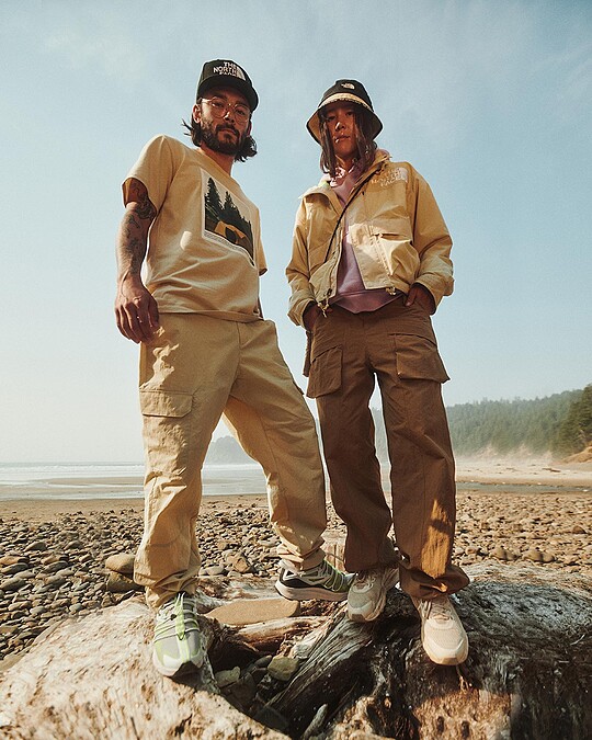 The North Face 是專門販售戶外運動服飾跟配件的公司,它在日後發展出紫、白、紅、黑標等支線,主要發展機能性時裝,比起主線來得時髦且符合日常穿搭,品牌因此進入潮流人士的視野裡,喜愛 Urban Outdoor 風格的人千萬不要錯過。其中紫標是與日本品牌 Nanamica 合作的產物,屬於購買方便、實穿性最高的一個支線。