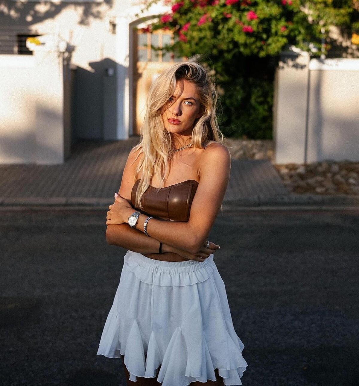 不對稱的綁帶背心造型,恰恰勾勒出Alica Schmidt的姣好身形,特別適合看演唱會、派對等狂歡時刻,可以大方展現外形優勢。