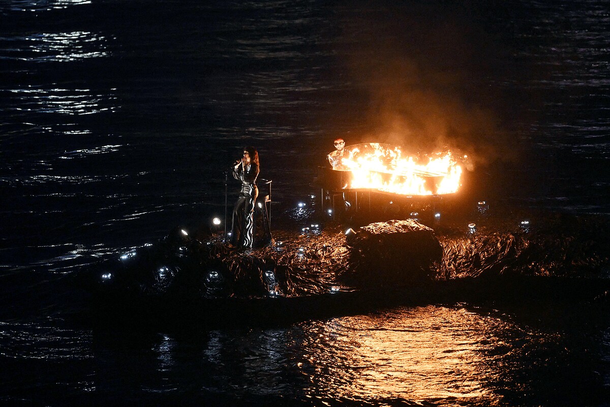 法國歌手 Juliette Armanet 在船上,表演了John Lennon的《Imagine》傳達了對運動與創作的無限想像,這是一首充滿和平意義的頌歌,完美的歌聲與火焰呈現了充滿力道的視覺火花。而其身著的服飾是 Dior 刺繡工匠 Clara Daguin 運用其極具天賦的技術與美感製作而成,服裝上的刺繡會隨燈光優雅擺動,同時這也是 Clara Daguin 的標誌性風格,聚焦眾人目光!