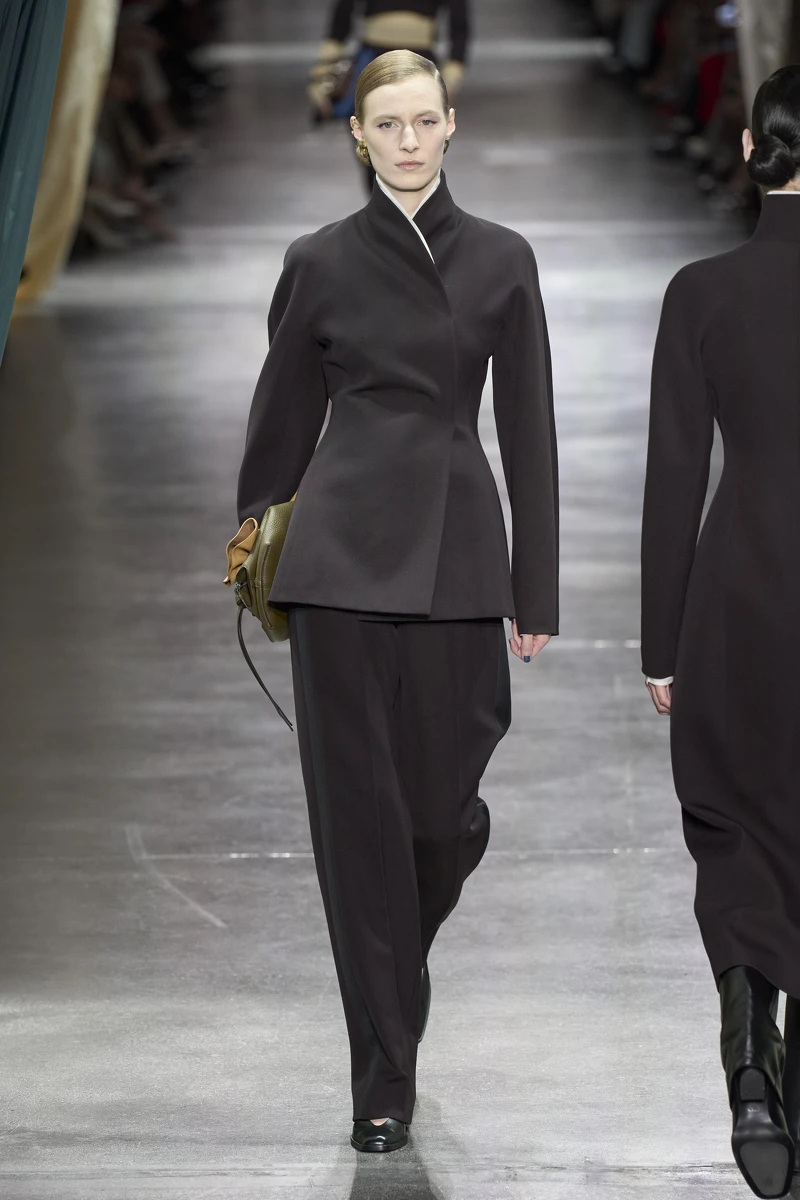同樣身為簡約風格中的標誌性品牌,以一件具有細緻剪裁的長洋裝作為造型主調,帽飾、手袋及靴款更為造型襯托出高級不造作的簡潔氣勢。