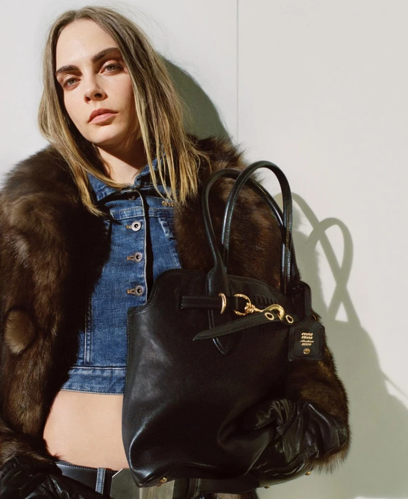 這款名為「Aventure」的包包復刻自Miu Miu的經典設計,靈感源自醫生包的輪廓,穿過包身的皮革金屬繫帶為此包款的特色,配有復古的手提把,它打破了傳統公事包的沉重感,運用柔軟的Nappa皮革打造慵懶氛圍,是本季的潛力爆款!