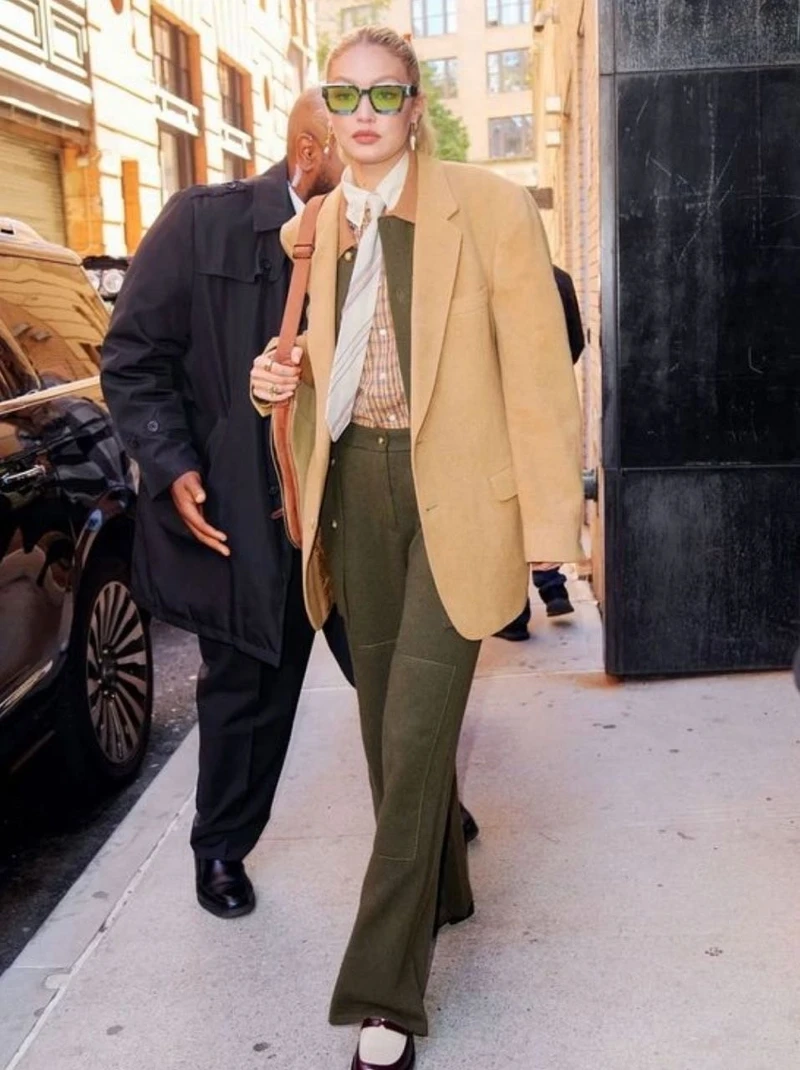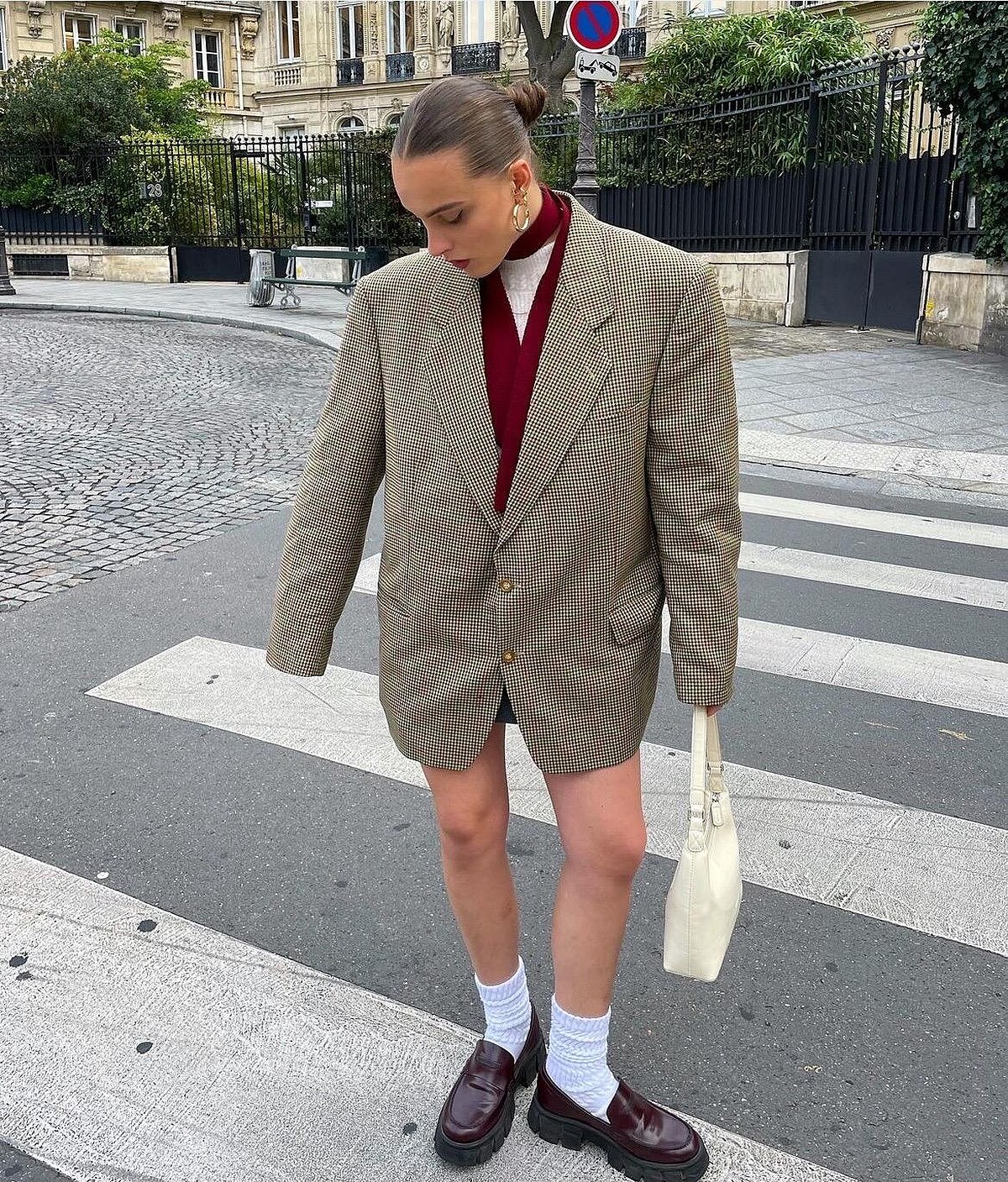 Grandpacore時常透過各種疊穿展現懷舊氣息,以格子襯衫打底配上翻領背心,外層穿上寬大的oversize西裝外套,在疊穿不同單品時可以掌握「三明治配色法」巧妙運用顏色,也要切記不要出現太多複雜的元素,否則容易使造型失焦喔。