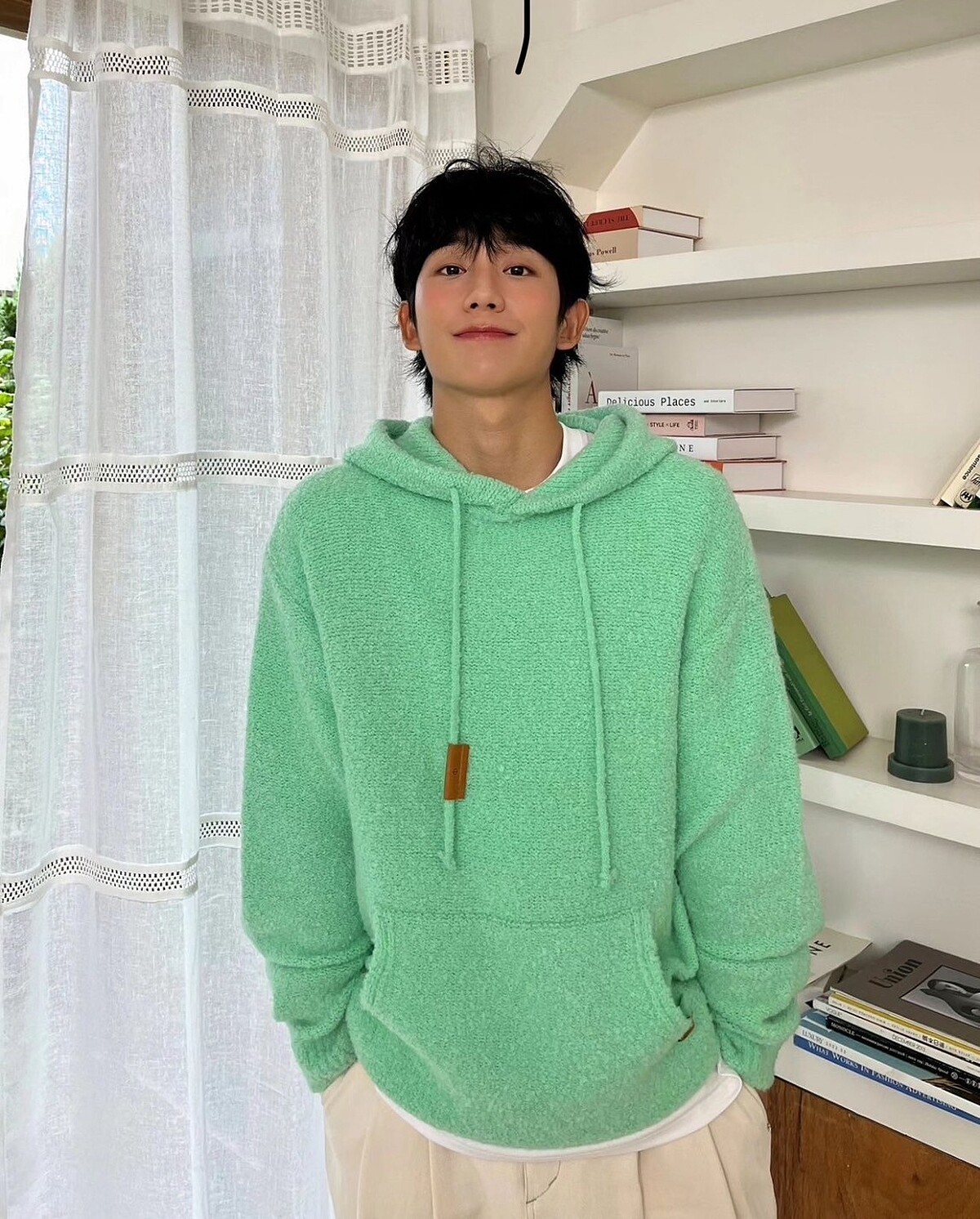 私底下海寅也曾穿過這種薄荷綠色的帽T,讓人發現他意外適合這種特殊色,好身材與帥氣的臉蛋真是想必是什麼都能駕馭!(QQ)