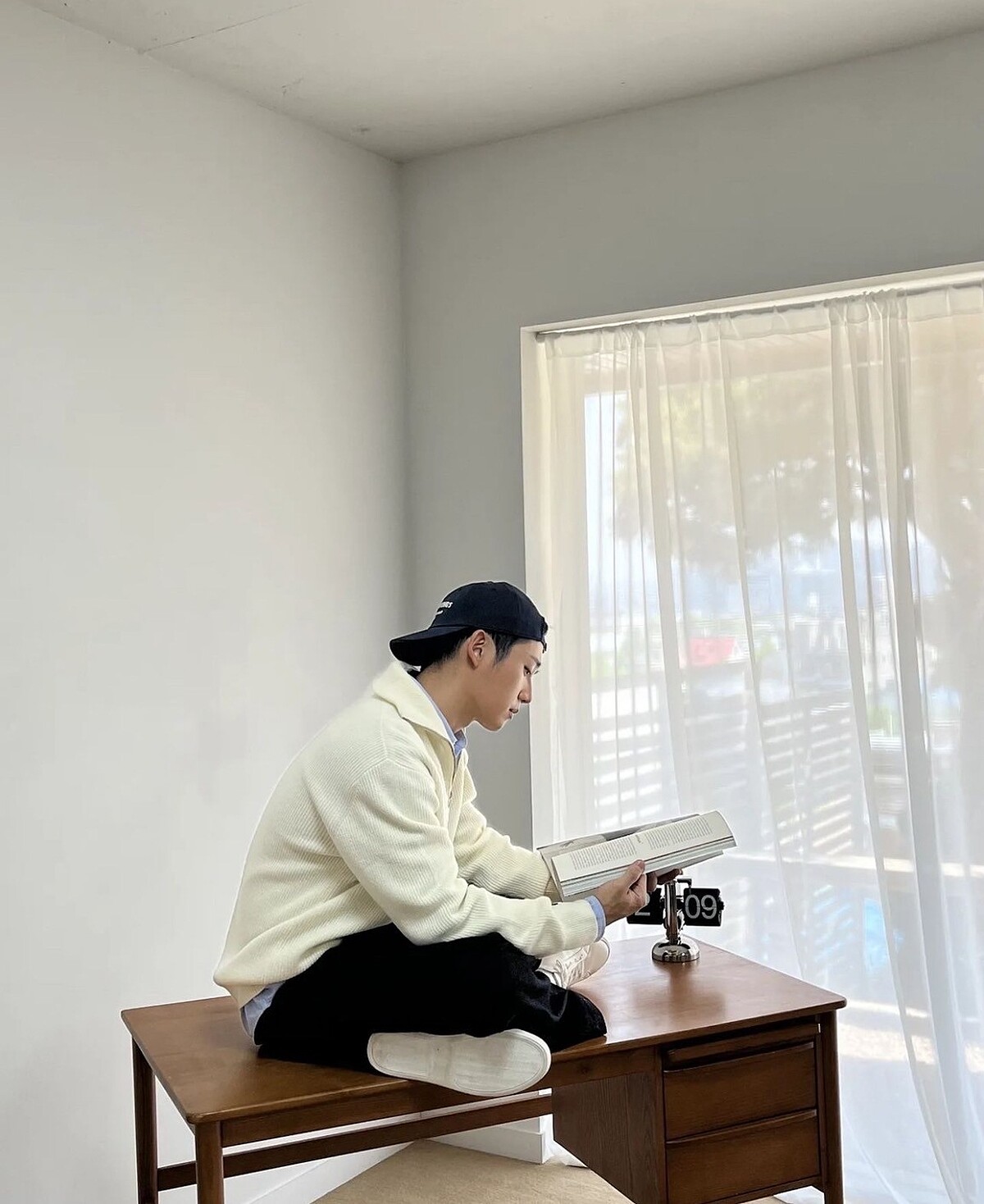 一向展現溫柔男友風的海寅,這次呈現了高級斯文的新面貌,一件開襟上衣內搭淺藍色襯衫,下擺微微露出打造高冷的層次感。