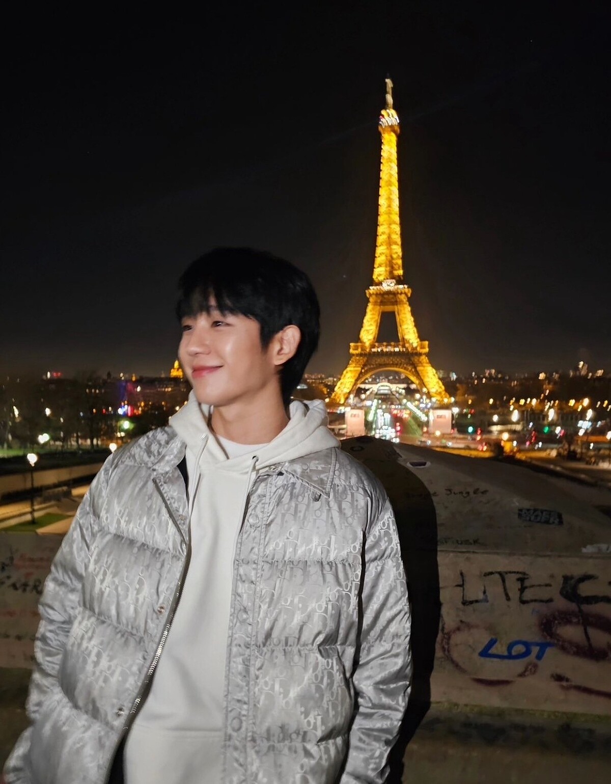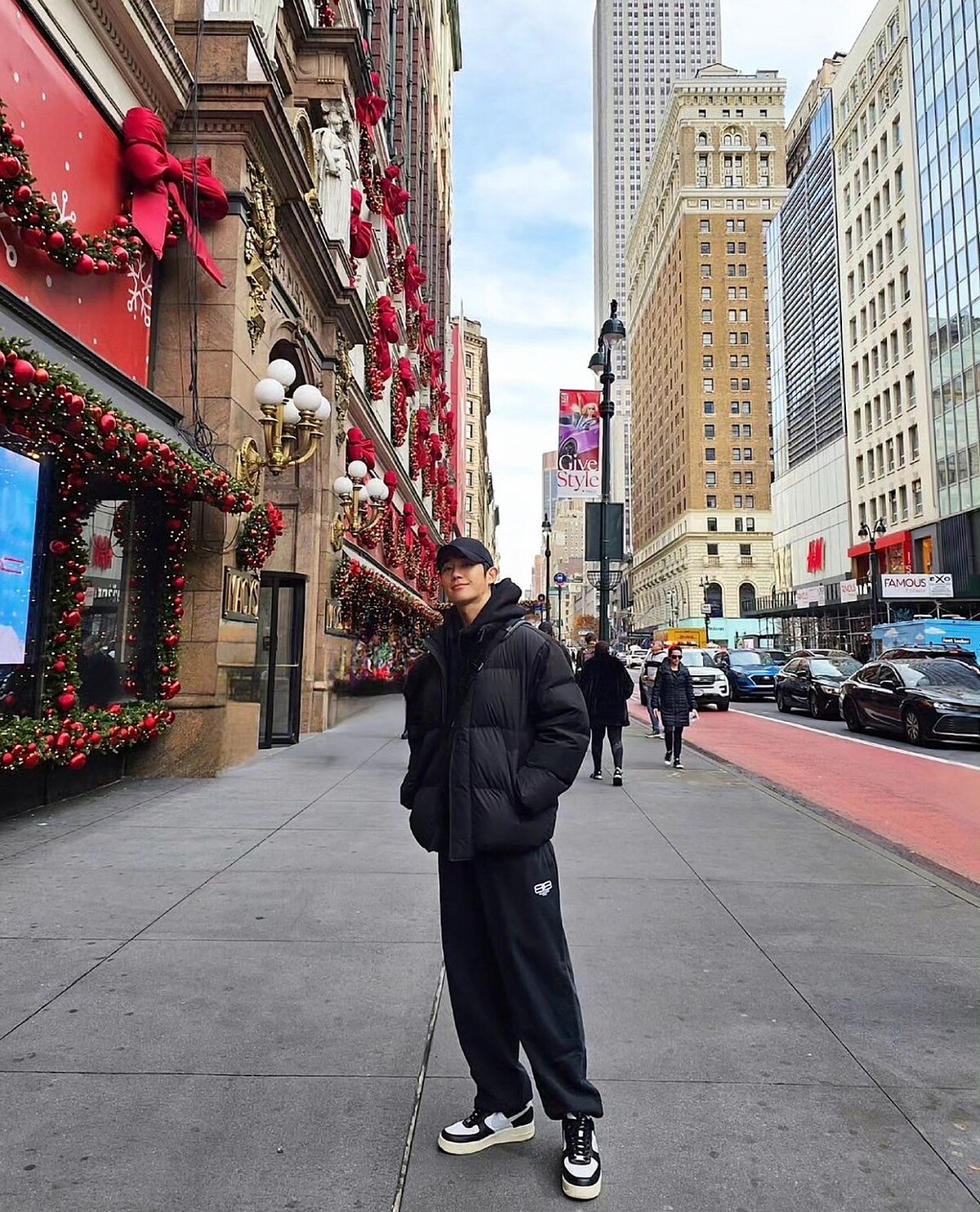 丁海寅換上一件黑色帽踢並用黑色外套來拉出層次感,非常的帥氣有型,也簡單有型!