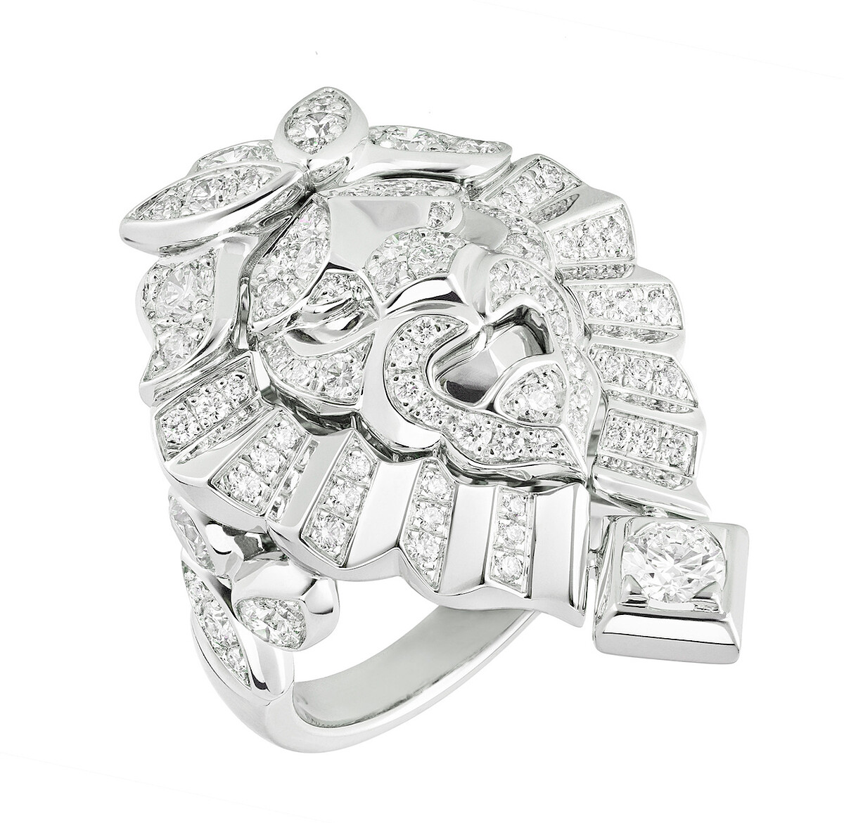 Lion Solaire De CHANEL 戒指:18K白金與鑽石。