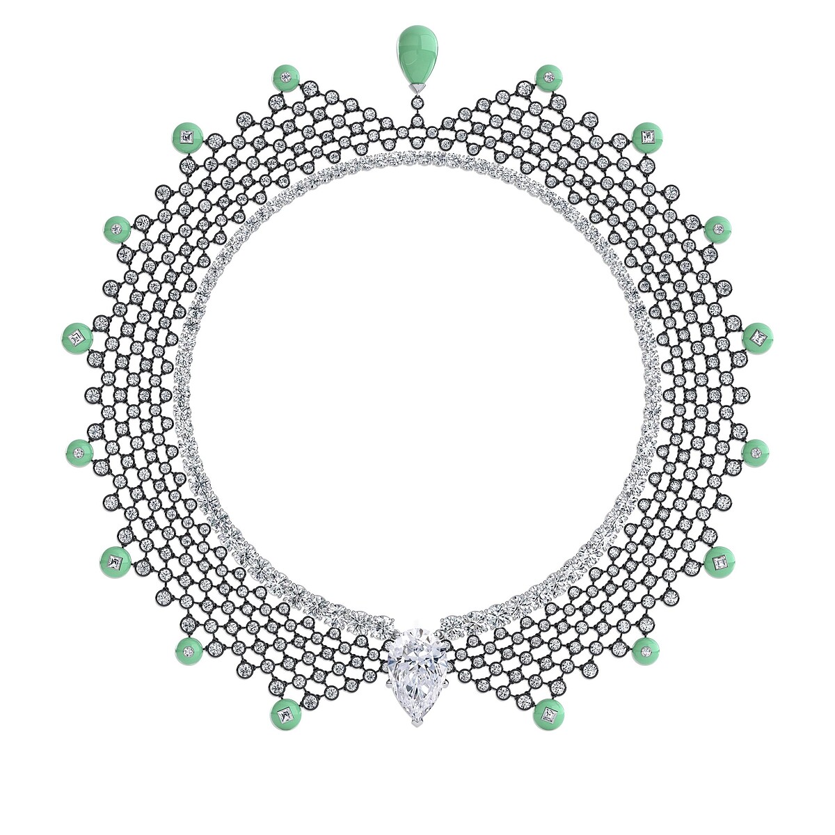 The Alchemist of Light 高級珠寶系列,可轉換式設計 Midnight Aura 鑽石項鍊,18K白金鑲嵌,鑽石總重 74.73 克拉。