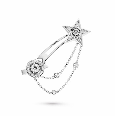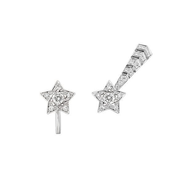–Comète 流星不對稱耳環:18K白金與鑽石。