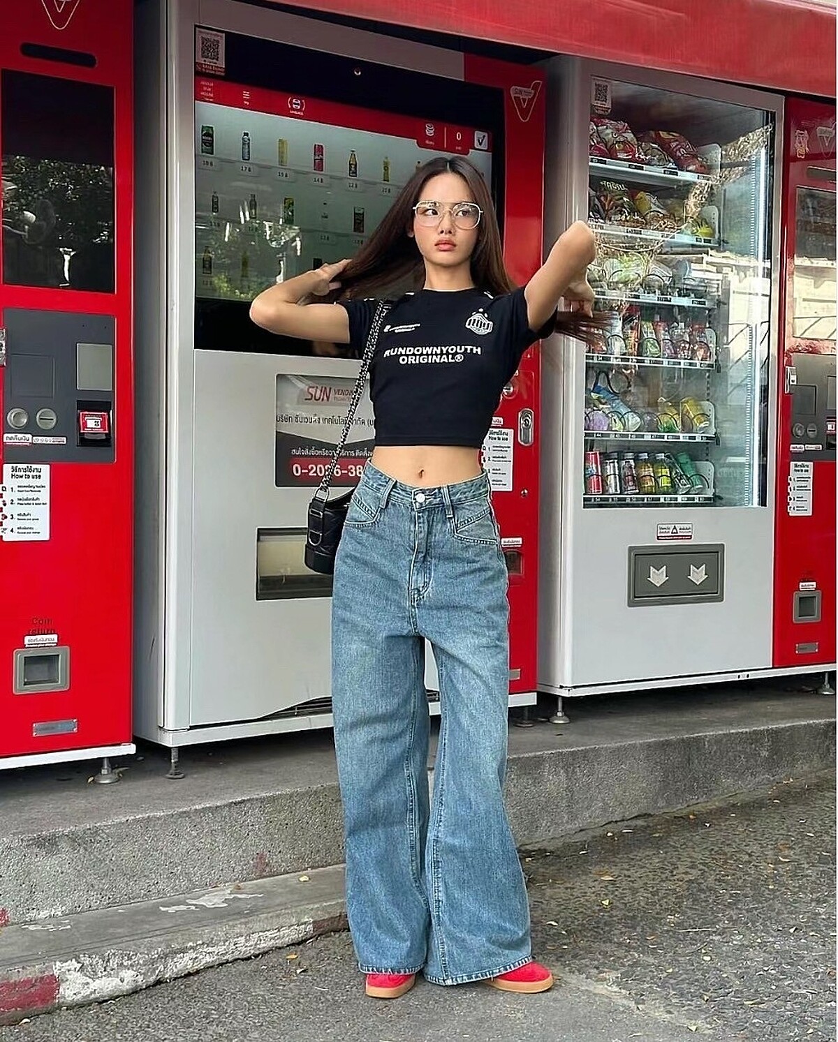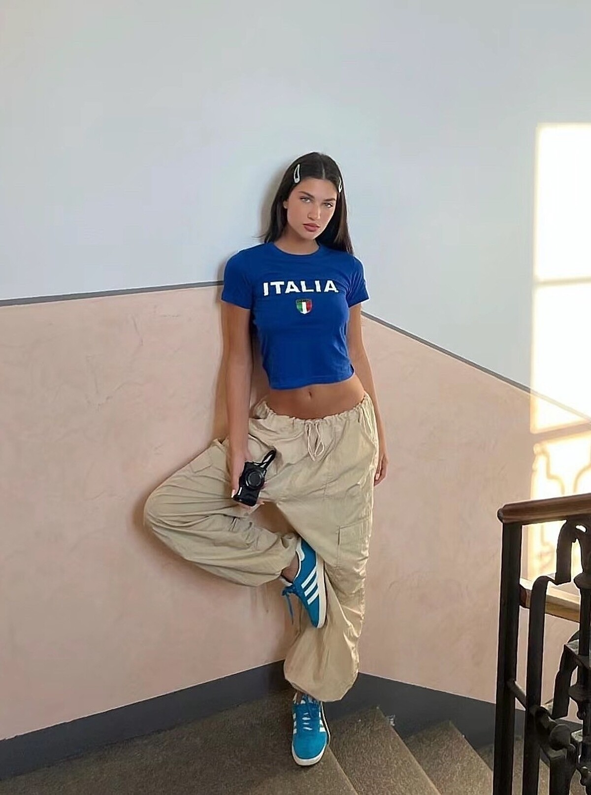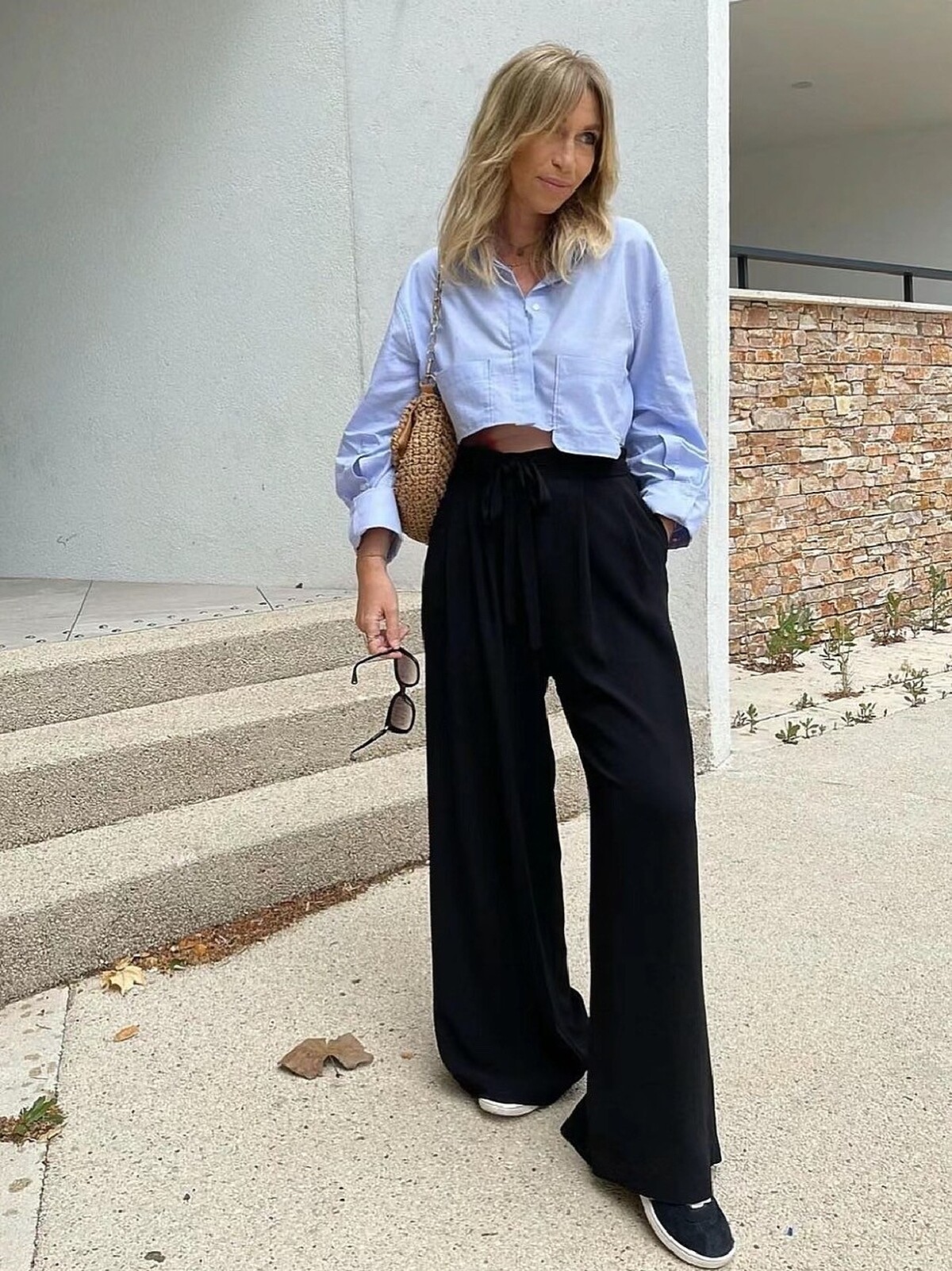 合身的短版上衣搭配寬鬆的下半身單品,不僅能平衡整體比例,還能突顯纖細的腰部。尤其對於下半身較豐滿的梨形女孩來說,選擇寬鬆的褲裝或裙裝更能修飾身形,同時展現出上半身的窈窕曲線。