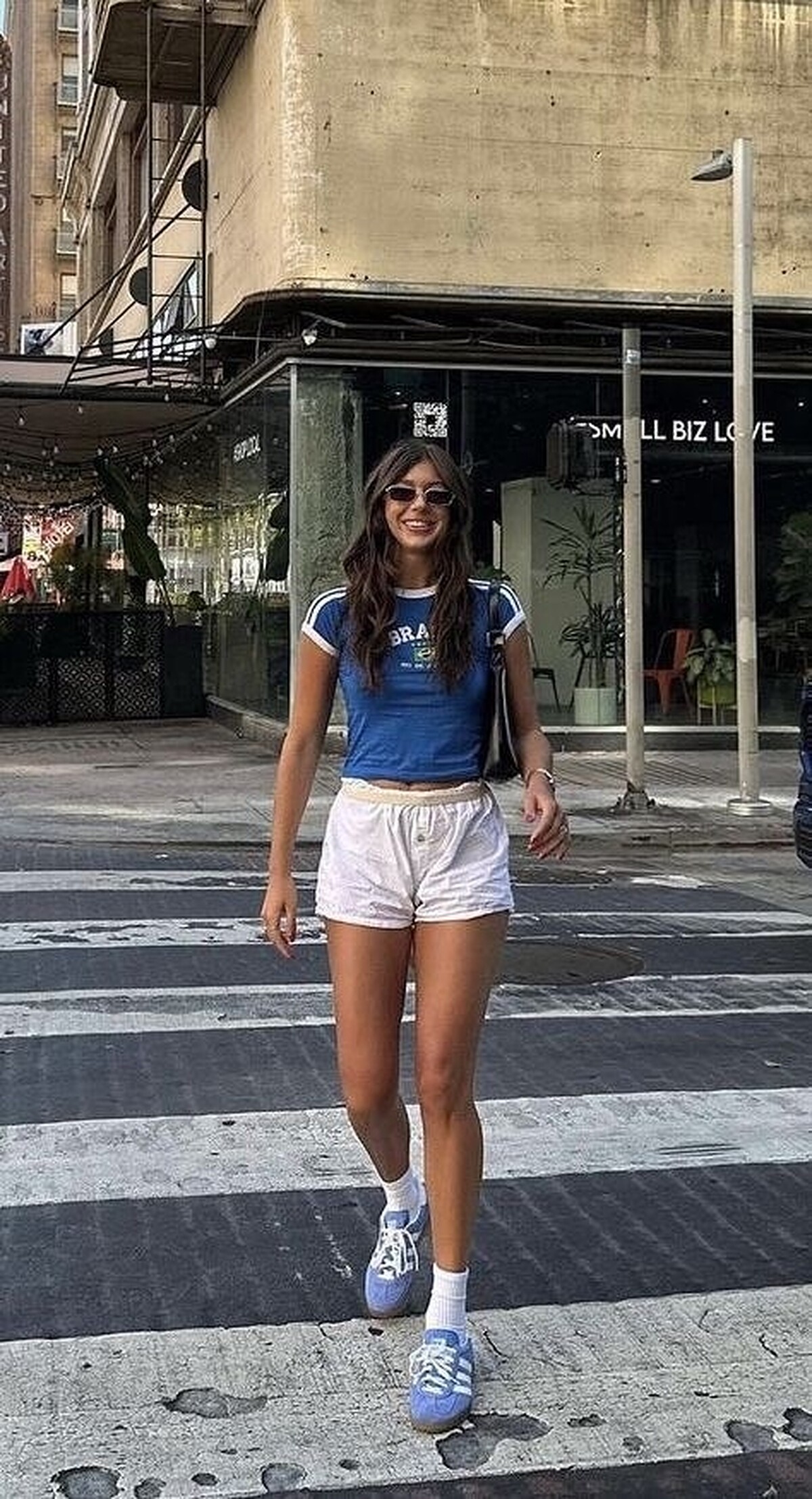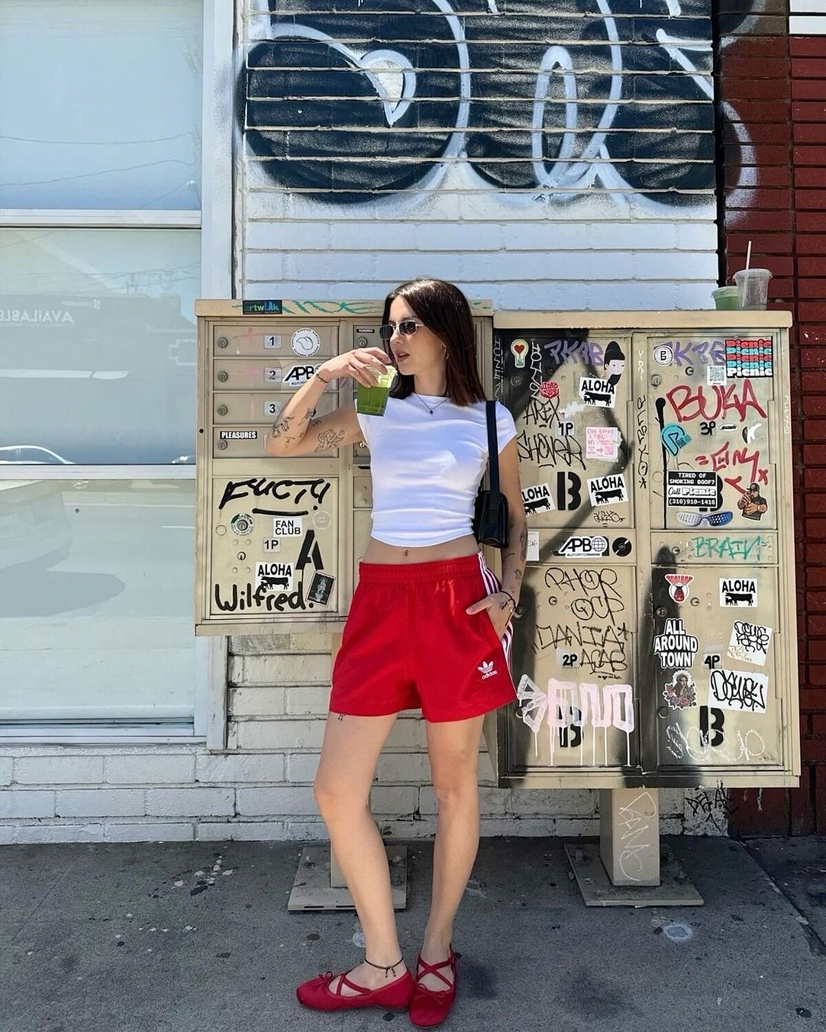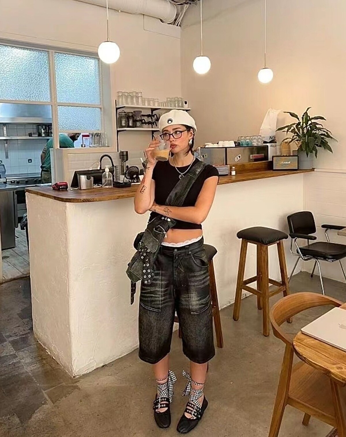 基本的短板T恤除了配牛仔褲和裙裝這些經典單品外,更可以試著搭配比較特別時尚的單品,如五分褲(jorts)或百摺短裙,它們能為簡單的T恤添加更多層次感和風格變化!