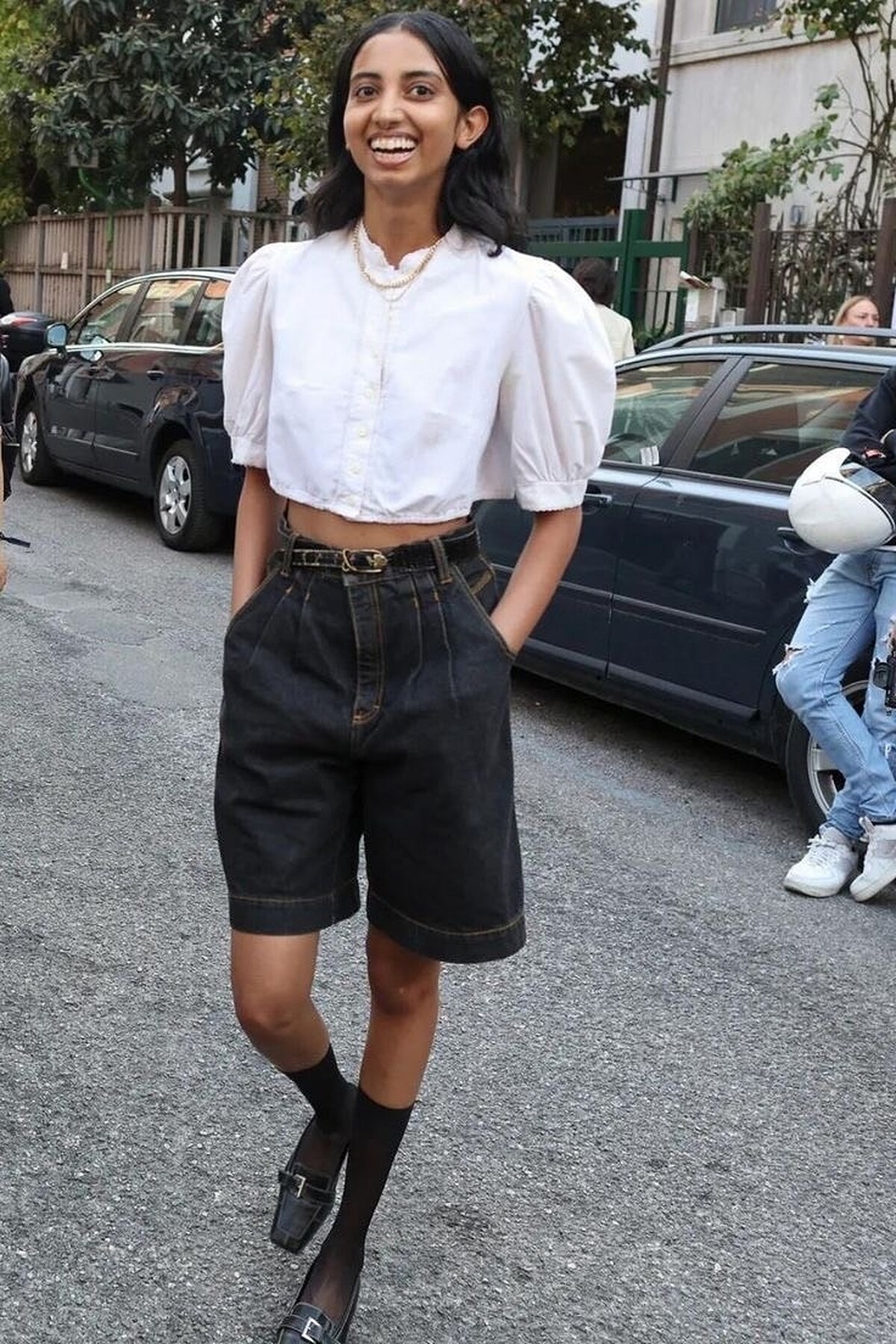 現在短版上衣與五分褲的搭配應該不陌生了吧!五分褲寬鬆的設計賦予整體風格一種隨性鬆弛感,而短版上衣則能突顯身材曲線,如果將褲子拉成低腰並搭配雙層褲頭的設計,也讓造型多了點層次!