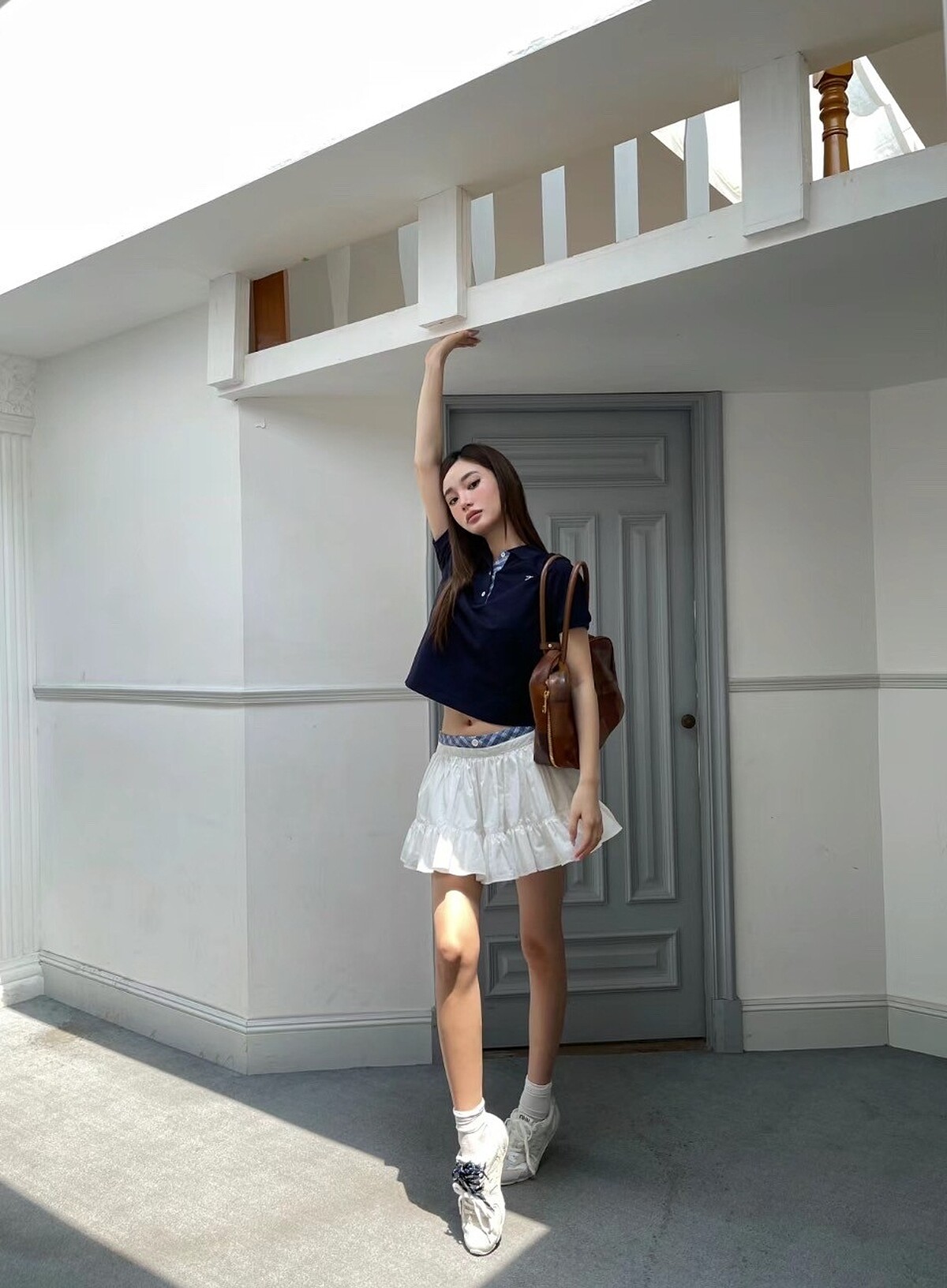 學院風的流行改變了以往傳統襯衫的款式,換上一件短版polo衫搭配一件白色百褶短裙,整體呈現俏皮可愛風,好青春又有活力!