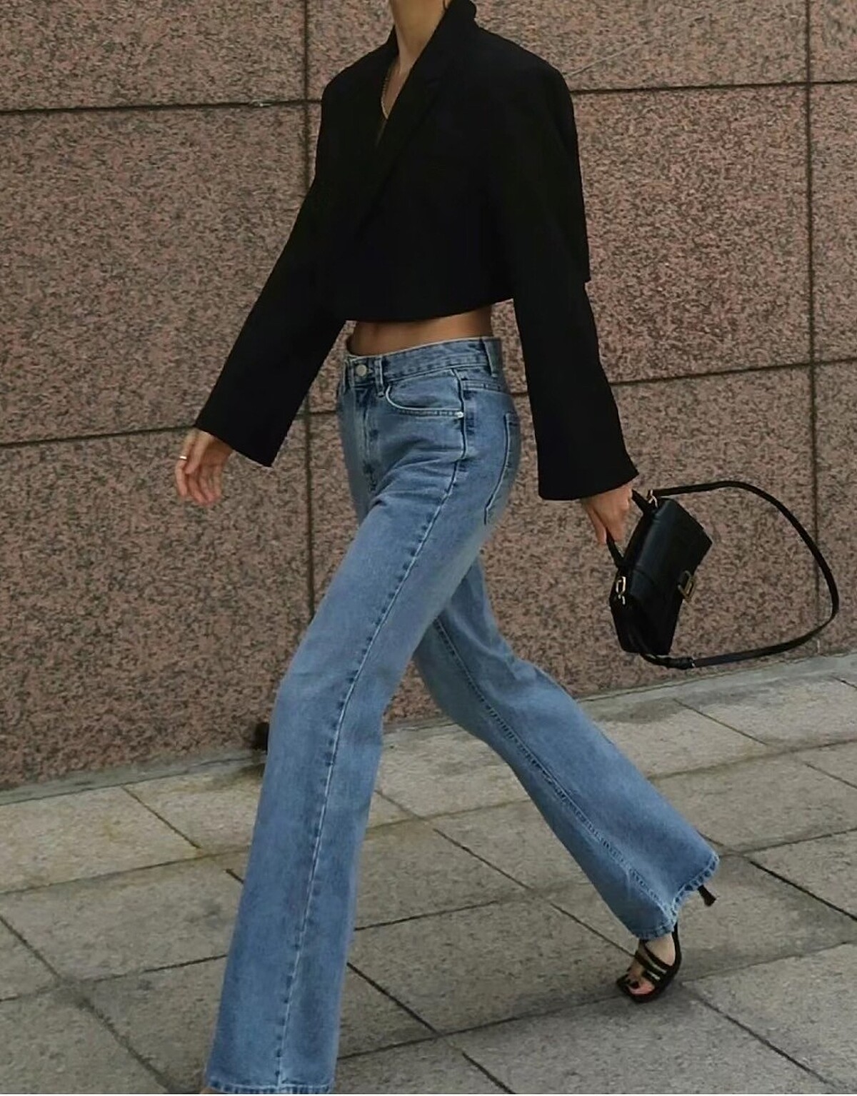 短版西裝外套與牛仔褲的搭配正式又有高級感,比起以往傳統的西裝外套,這種短版款式+高腰褲更能展現自己的好身材。搭配一雙短靴或高跟鞋,質感立刻出來!
