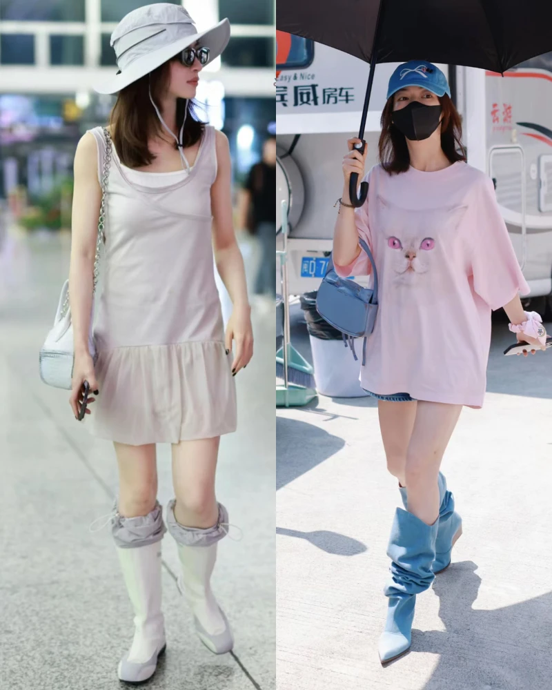 吳謹言的身高並不矮,有165公分,但是你可能也有發現,她的穿著比例經常失衡,讓她看起來像是只有一米五。吳謹言的喜好非常多元,有時她會為了喜歡的衣服,而忽略了服裝應是要幫自己揚長避短,像是當洋裝裙長不夠短時,她卻忘記凸顯自己纖細的雙腿,而用了另一雙過於高筒的靴子來搭配;Oversized T恤下也穿了雙半長不短的靴子,都讓她瞬間成了五五身身材。