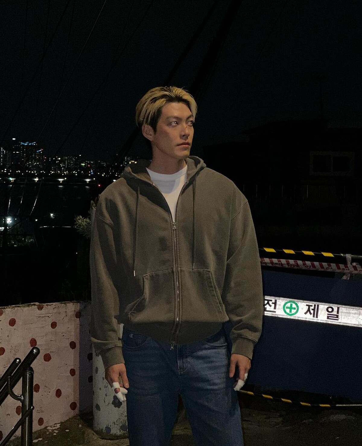 電影中金宇彬原先是名平凡的少年,留著一頭看起來壞壞的金髮,還長出了一大截等著補染,非常隨性的連帽外套、牛仔褲,散發一種壞痞的魅力。