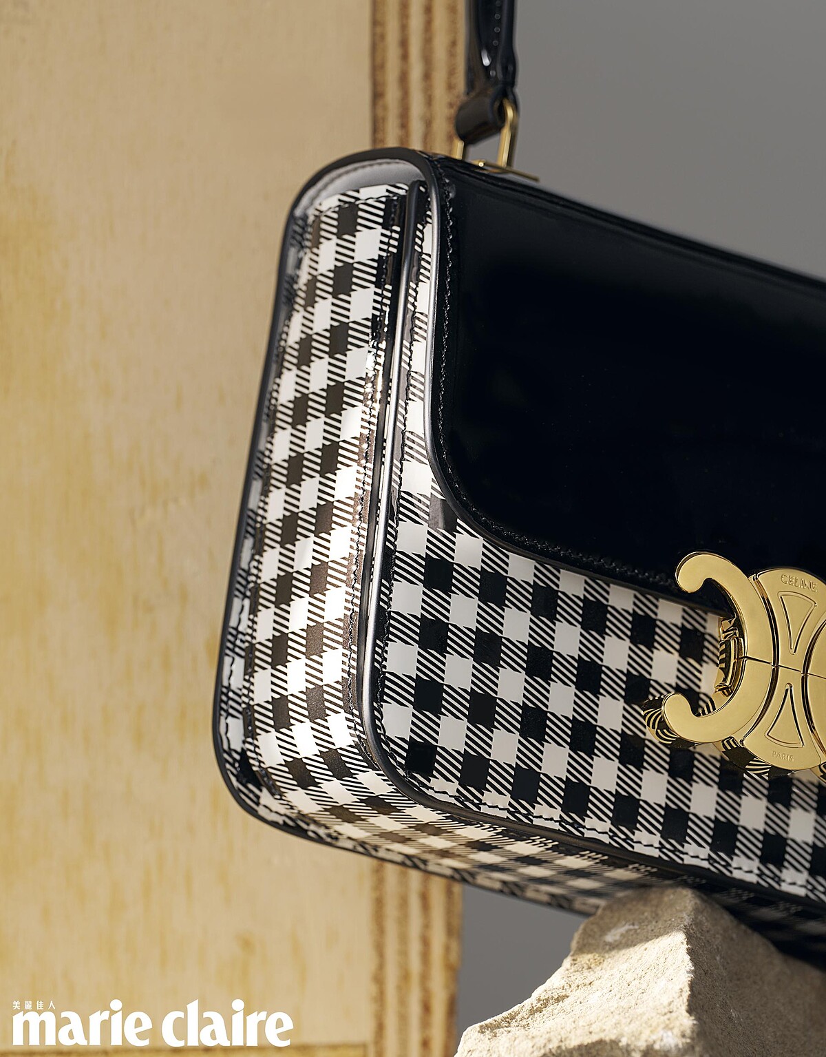 Teen Garance包款的設計靈感來自Celine的經典Triomphe Classique包款。這顆包款上的復古金色飾件被分為兩部分,並通過精密的機械工藝扣合在一起。上部分刻有Celine 字樣,而下部分則是巴黎的象徵「PARIS」,這一細節無疑讓包款在經典與現代之間取得了完美的平衡。Slimane在設計中延續了Celine對於精湛工藝的追求,結構線條清晰可見,從前後邊緣到整體的形態,都呈現出一種簡潔的雕塑感,這是 Slimane 的品味與對細節的極致追求。不僅如此,Teen Garance提供了多種材質選擇,包括黑色漆面皮革、金色蛇皮革以及別具特色的Vichy印花漆面皮革,每一種材質都在觸感與視覺上體現出Celine對於材質的深刻理解與駕馭。無論是以奢華的漆面皮革強調現代感,還是以蛇皮革展示野性美,Teen Garance都展現了Hedi Slimane對材質與形態的獨特詮釋。